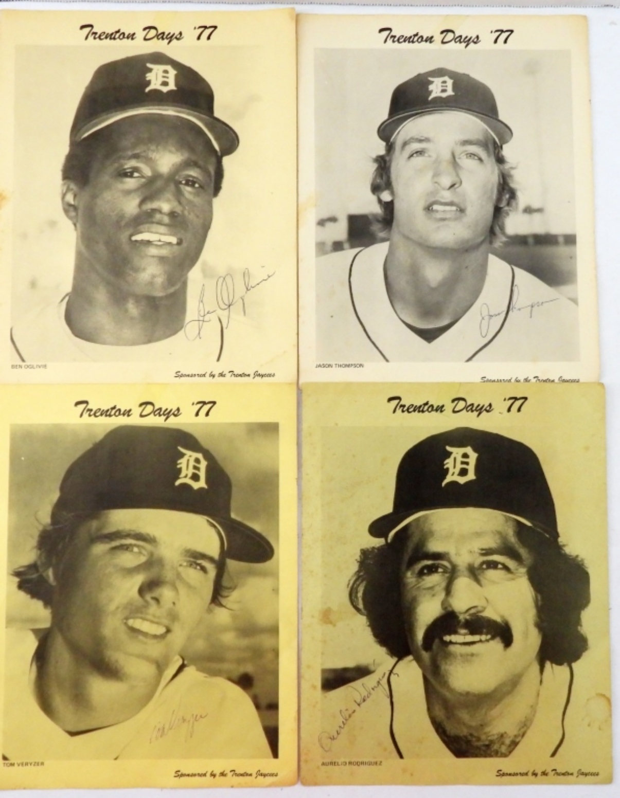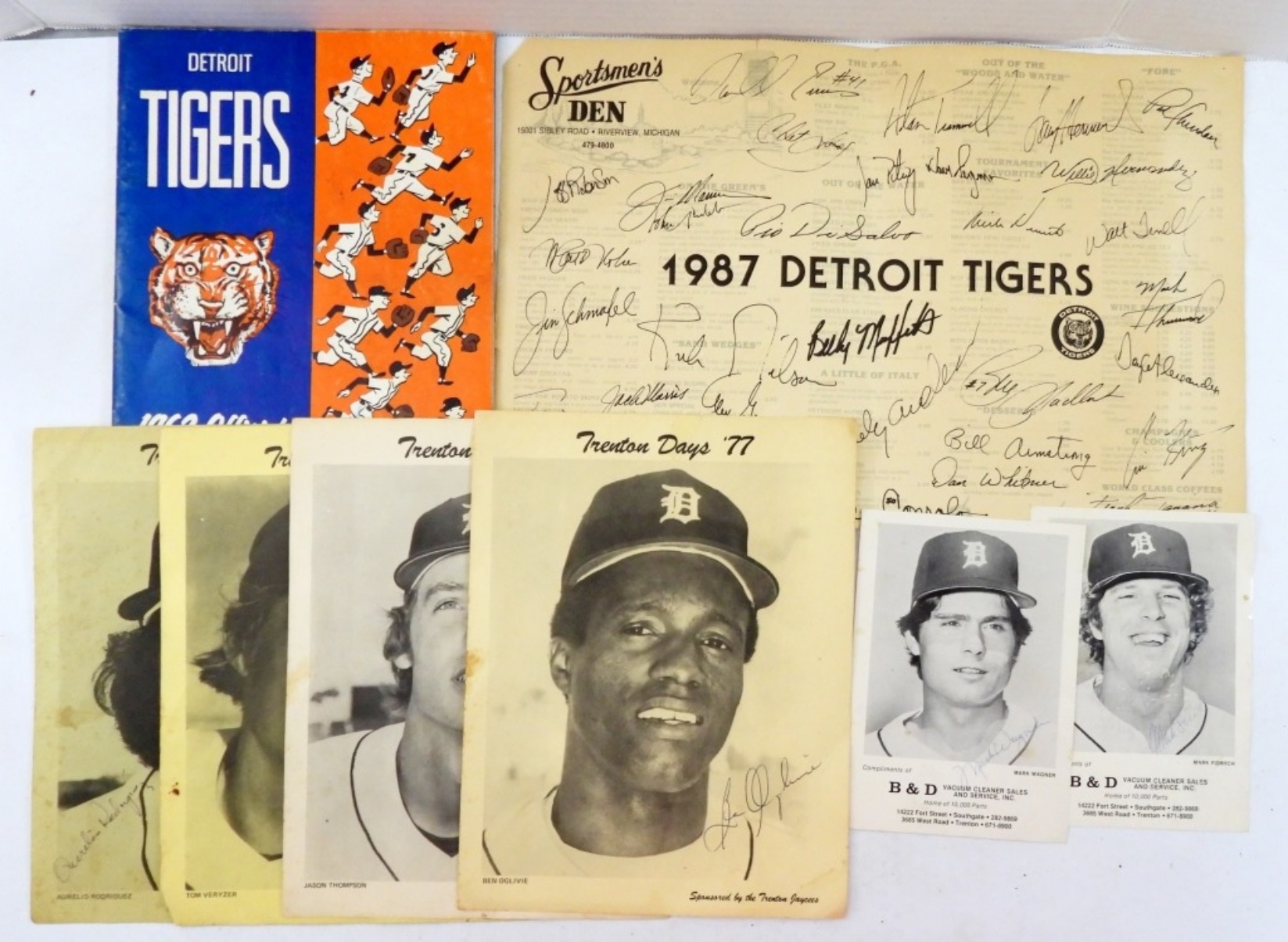 VINTAGE DETROIT TIGERS LOT – (6) DIFFERENT SIGNED PHOTOS 1977 ERA & 1962 YEARBOOK