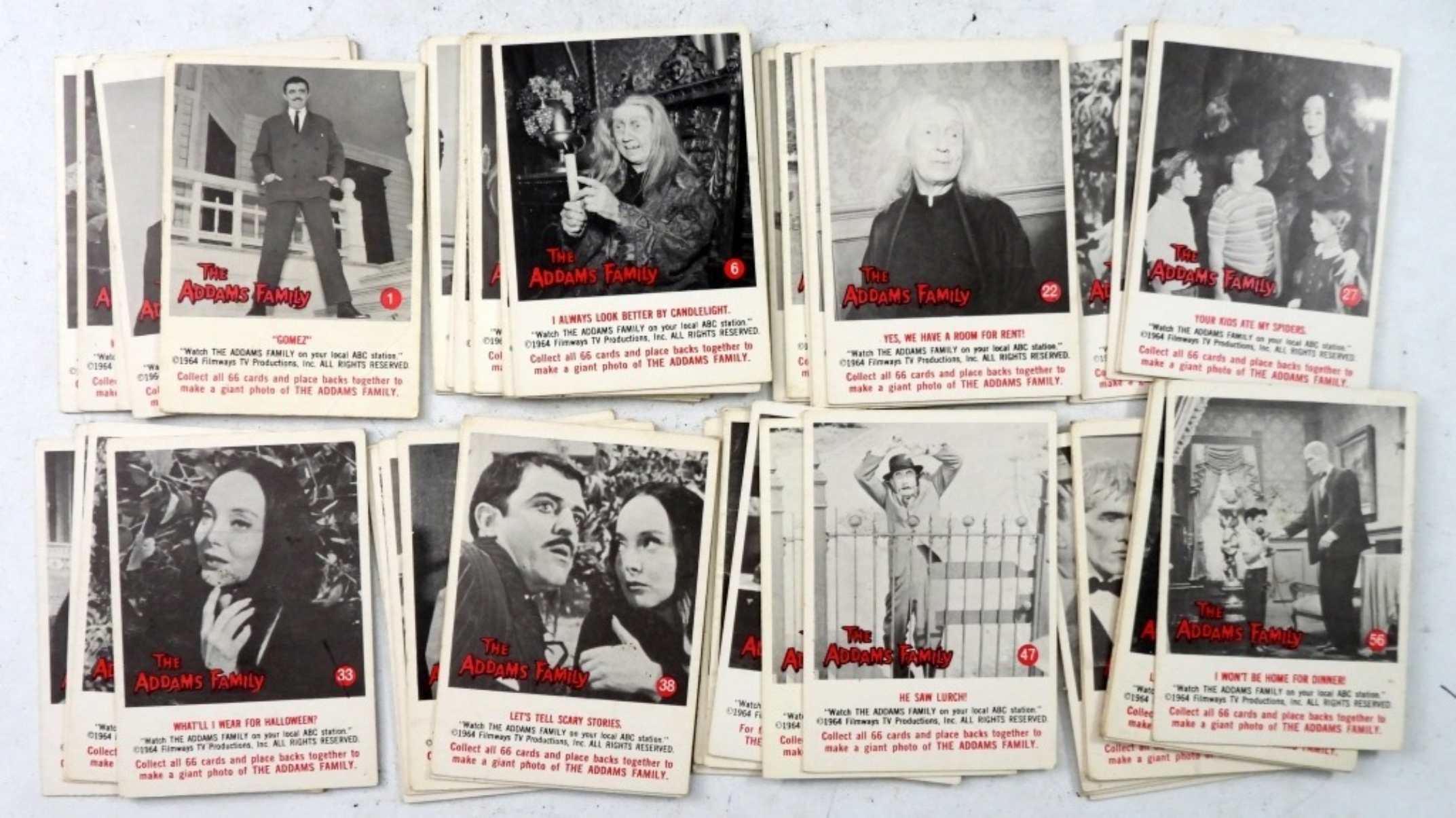 (50) 1964 THE ADDAMS FAMILY TRADING CARDS, SOME ARE DUPLICATES.