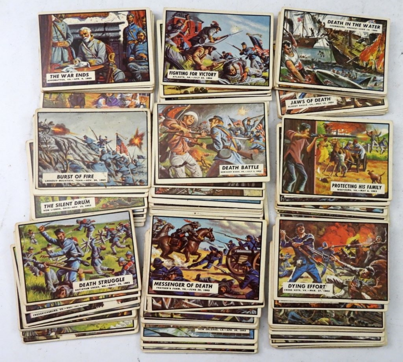 (88) 1962 TOPPS CIVIL WAR TRADING CARDS, MOSTLY DIFFERENT. VG/GOOD