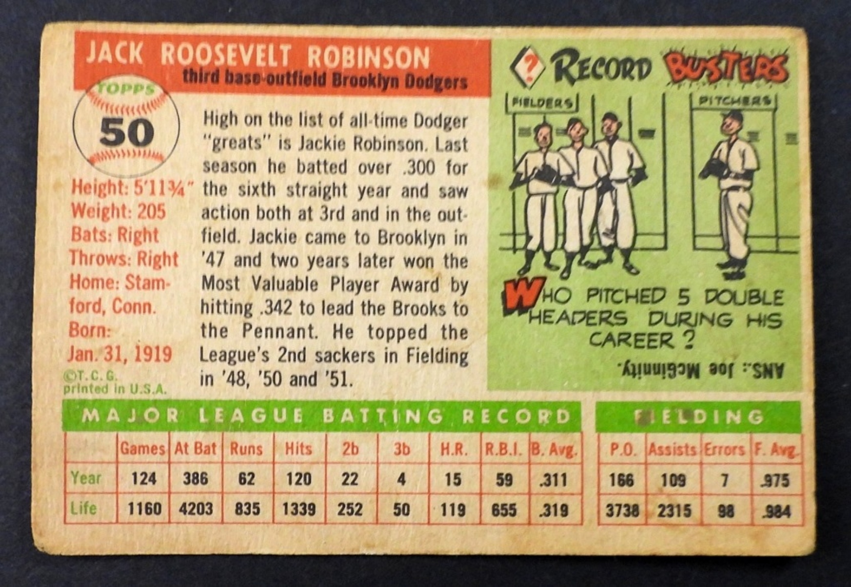 JACKIE ROBINSON BROOKLYN DODGERS 1955 TOPPS#50 (G)