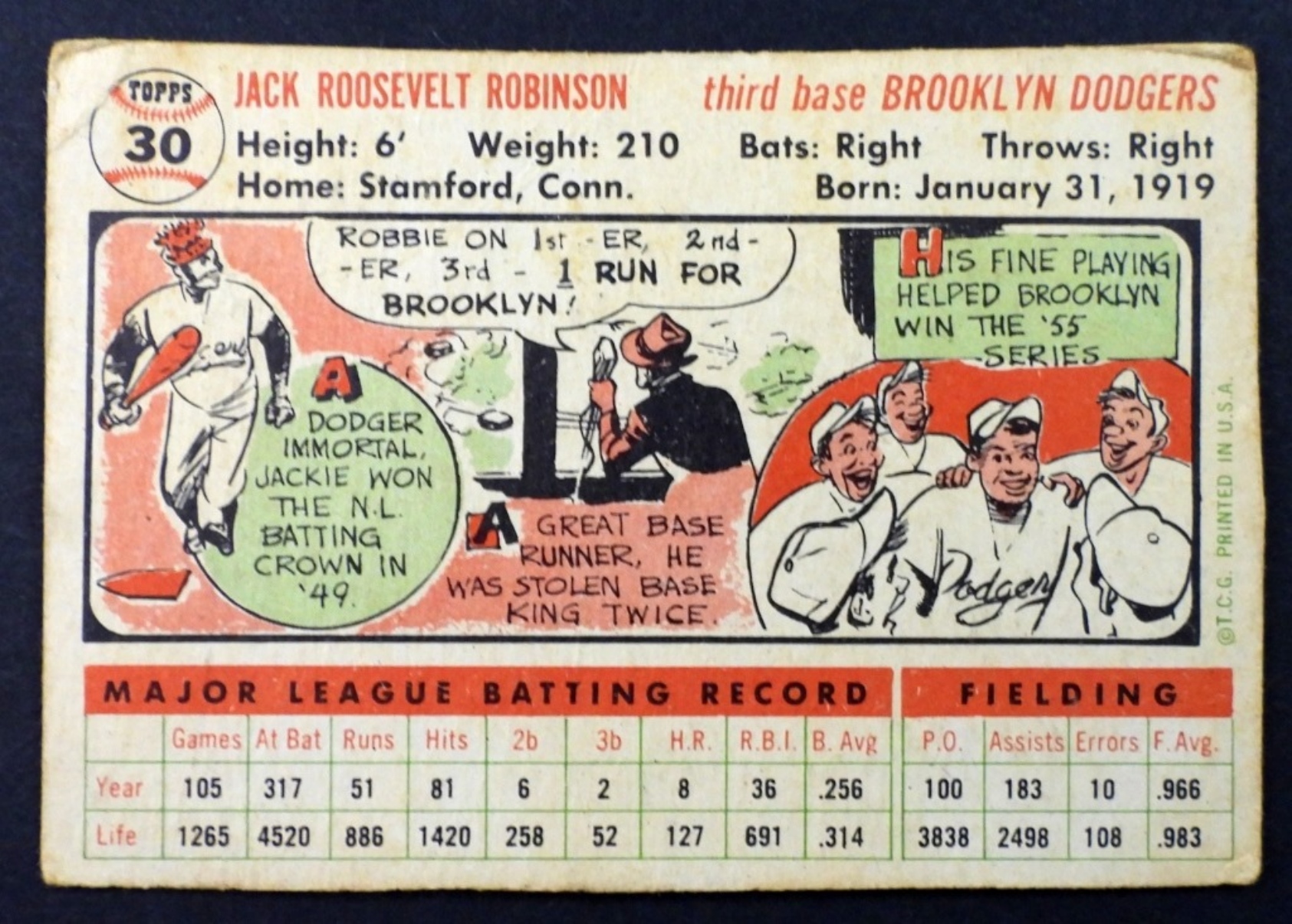 1956 TOPPS #30 JACKIE ROBINSON, THIRD BASE BROOKLYN DODGERS (VG)