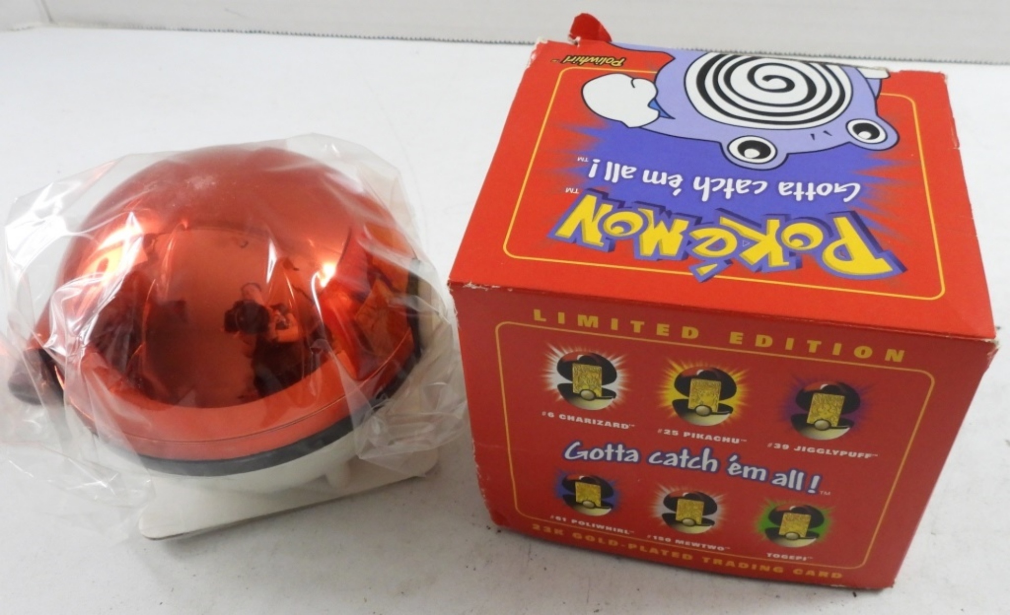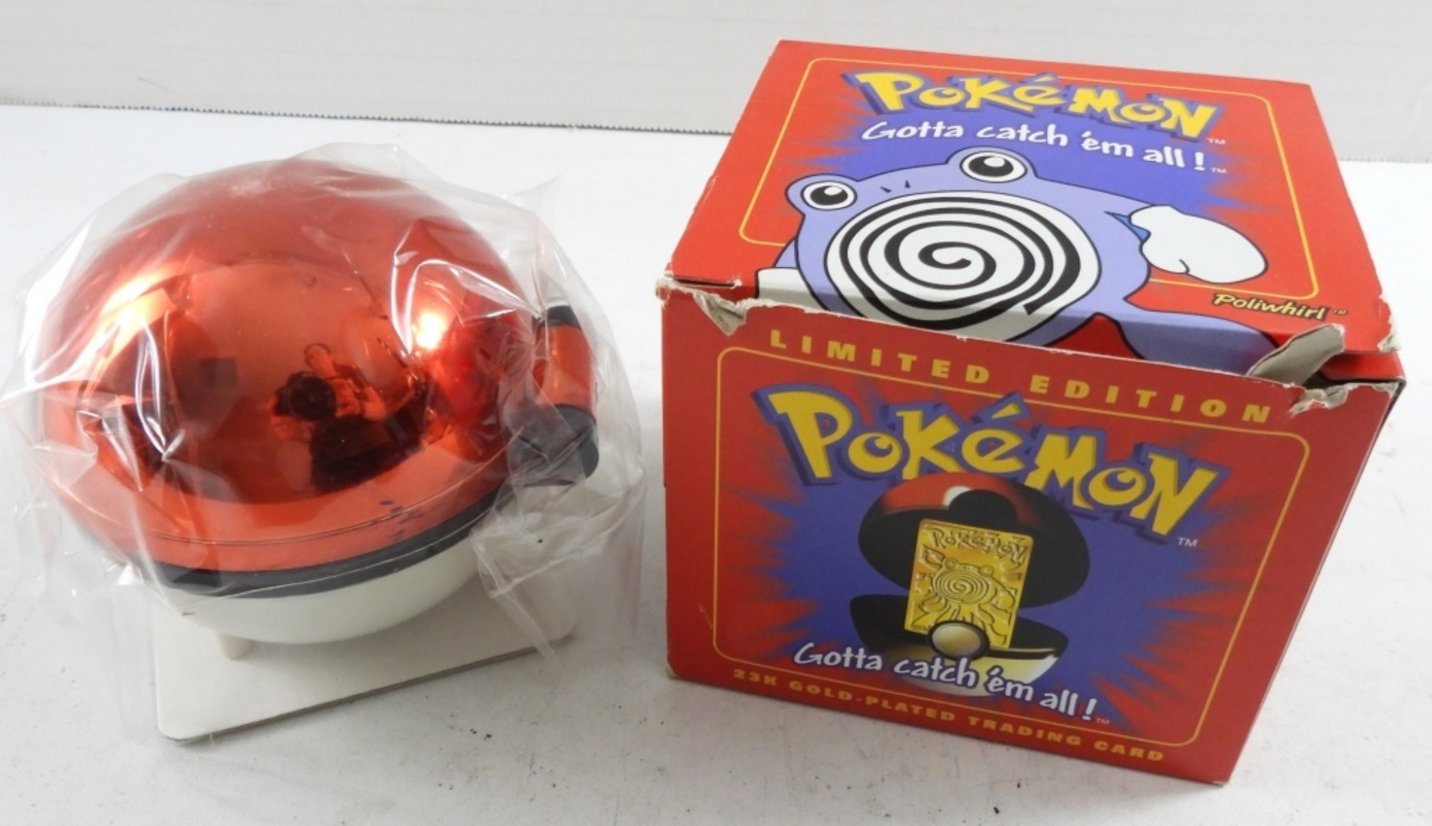 POLIWHIRL 23K GOLD PLATED COLLECTABLE TRADING CARD & BALL .SEALED NIP