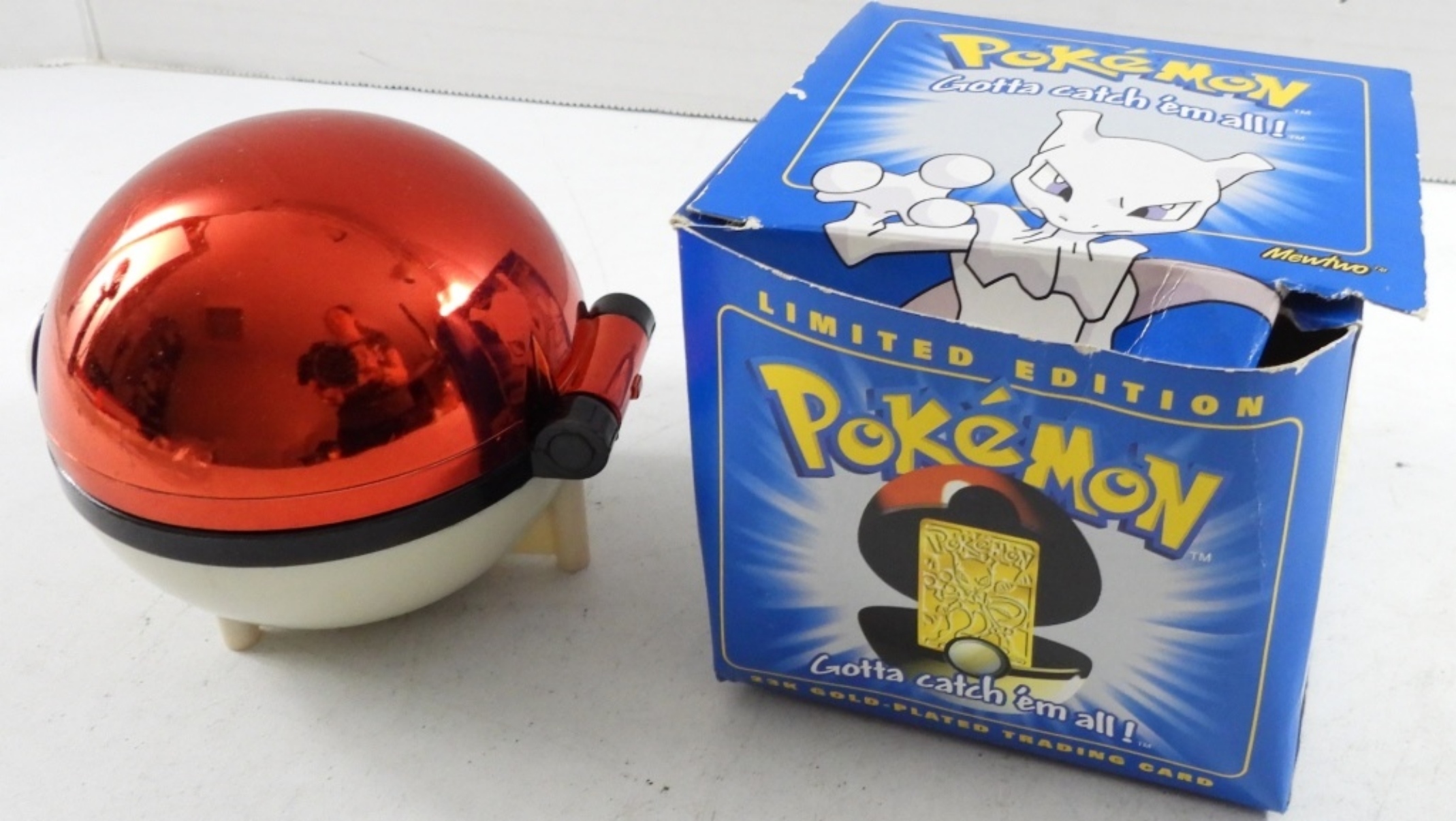 MEWTWO 23K GOLD PLATED COLLECTABLE TRADING CARD & POKEBALL (OPENED)
