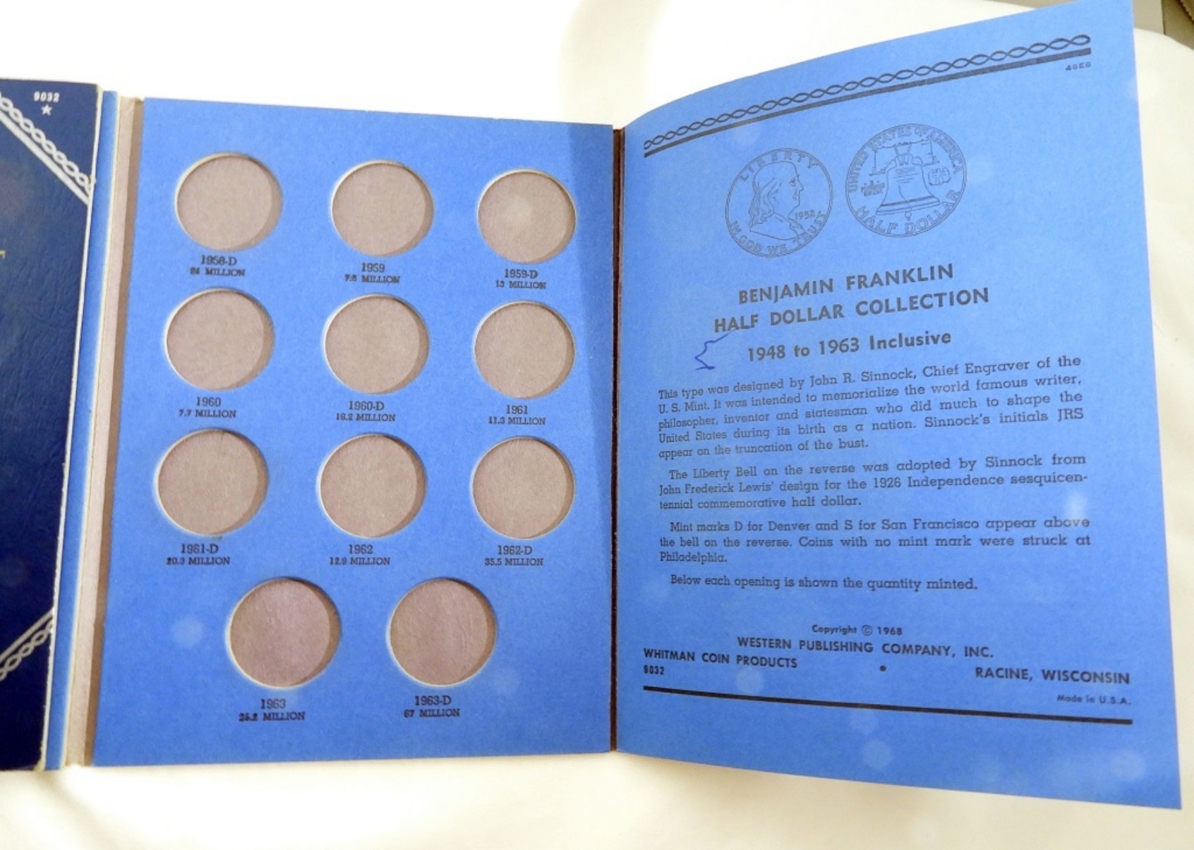 EMPTY. FRANKLIN 1948-1963, KENNEDY 1964-, KENNEDY 1964-1985, BARBER LIBERTY OR “MORGAN” 1904-1915, & HALVES (No. 9045).