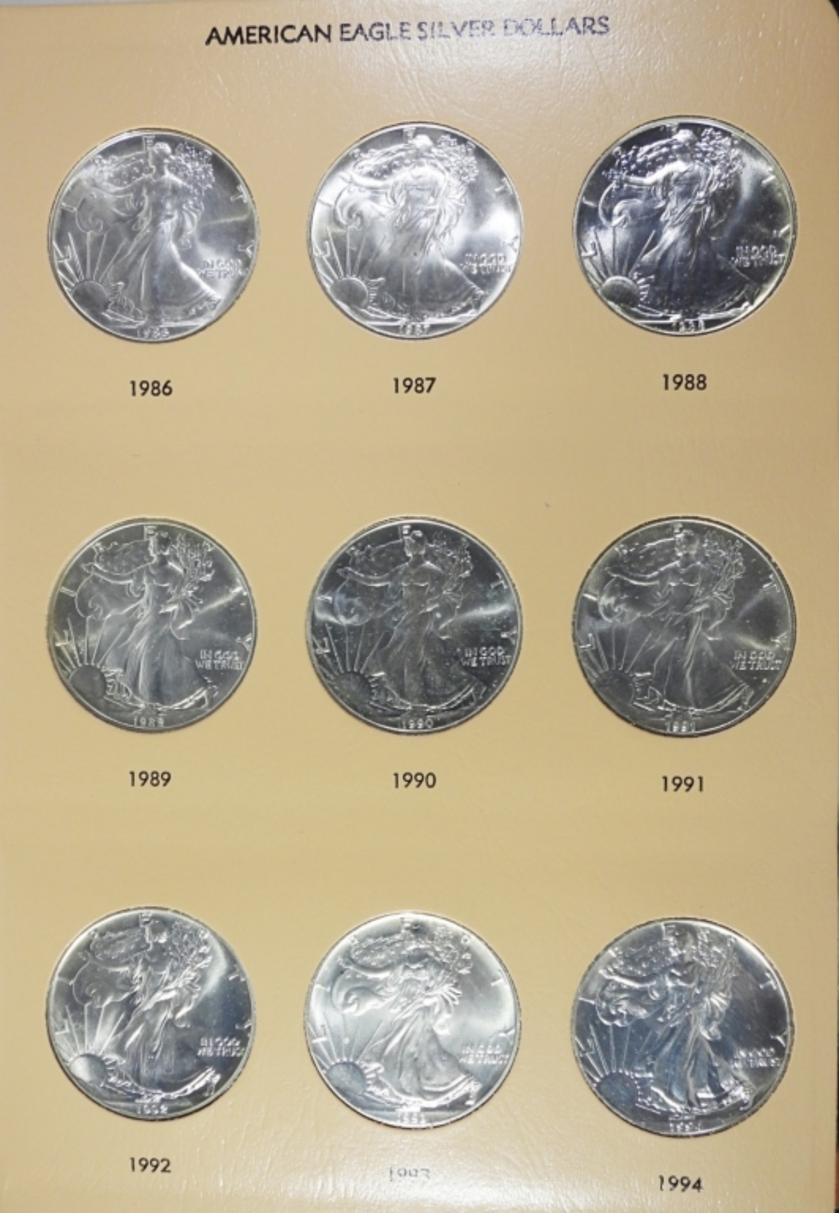 1986-2015 UNC/BU SILVER EAGLES IN DANSCO ALBUM