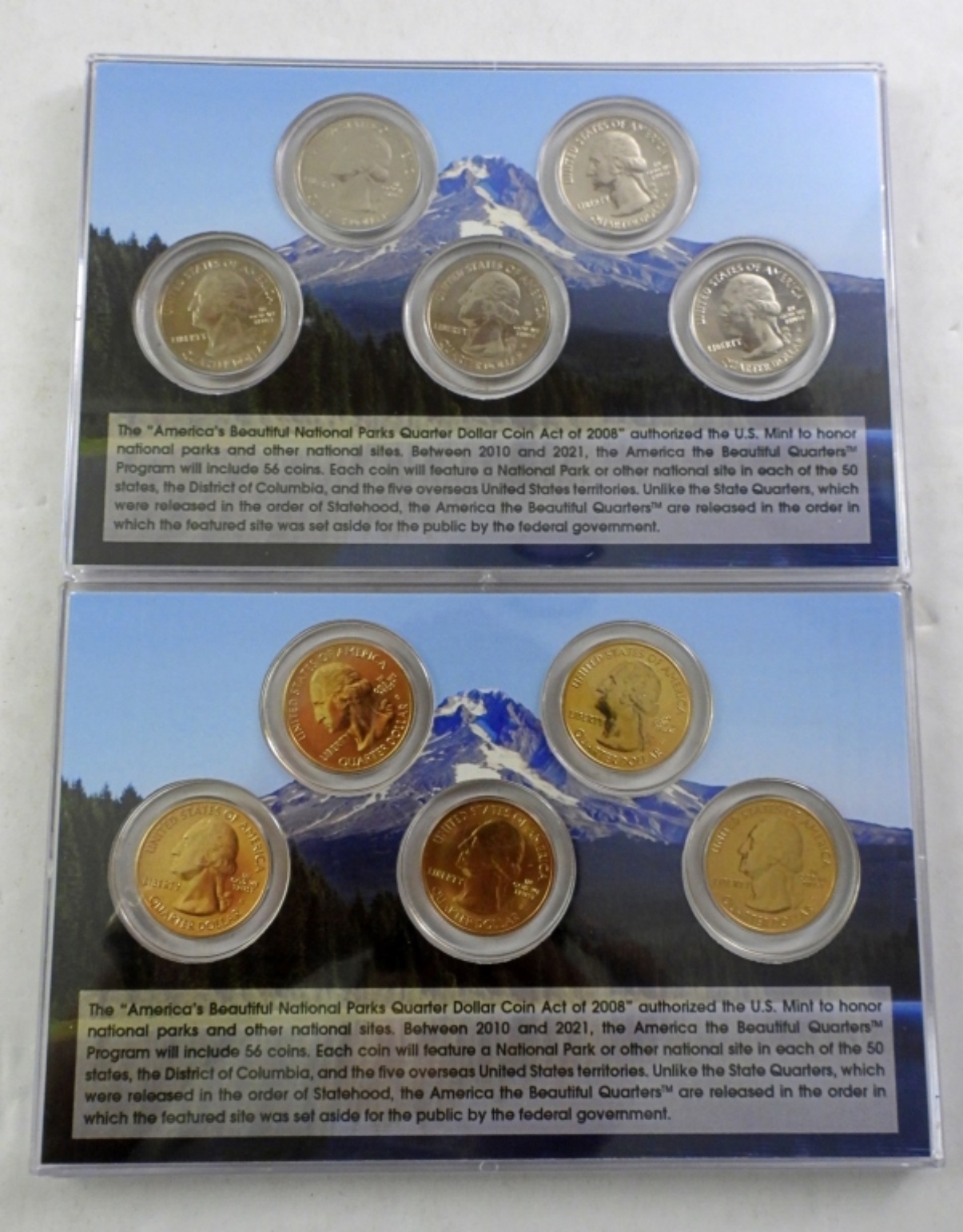 SAN FRANCISCO MINT UNCIRCULATED & 24K GOLD CLAD AMERICA’S NATIONAL PARKS 10-COIN QUARTER SET. IN BOX W/ COA.