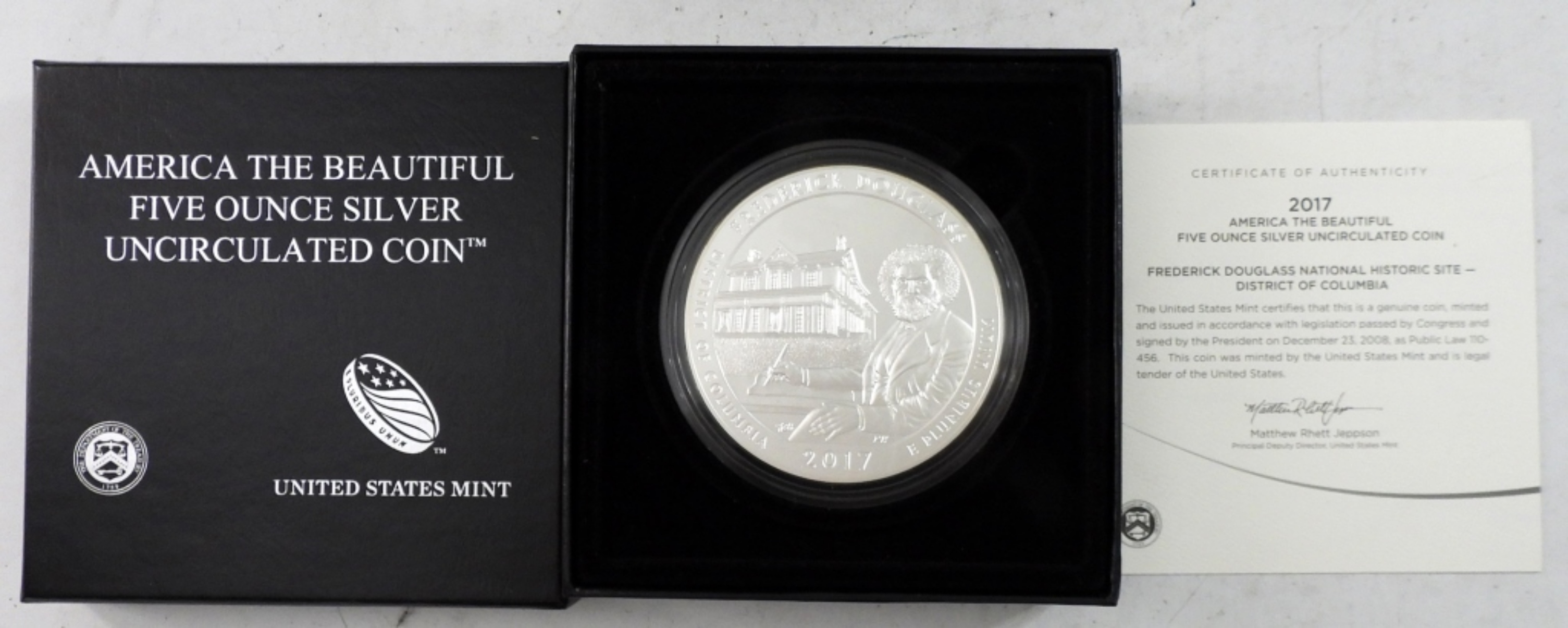 AMERICA THE BEAUTIFUL UNCIRCULATED COIN, FREDERICK DOUGLASS NATIONAL HISTORIC SITE – DISTRICT OF COLUMBIA. IN OGP W/ COA.