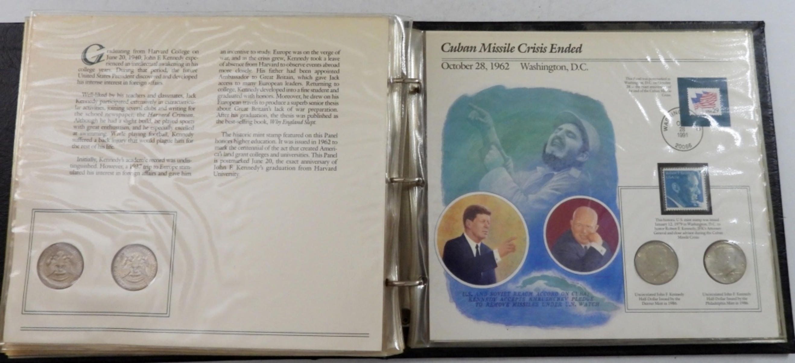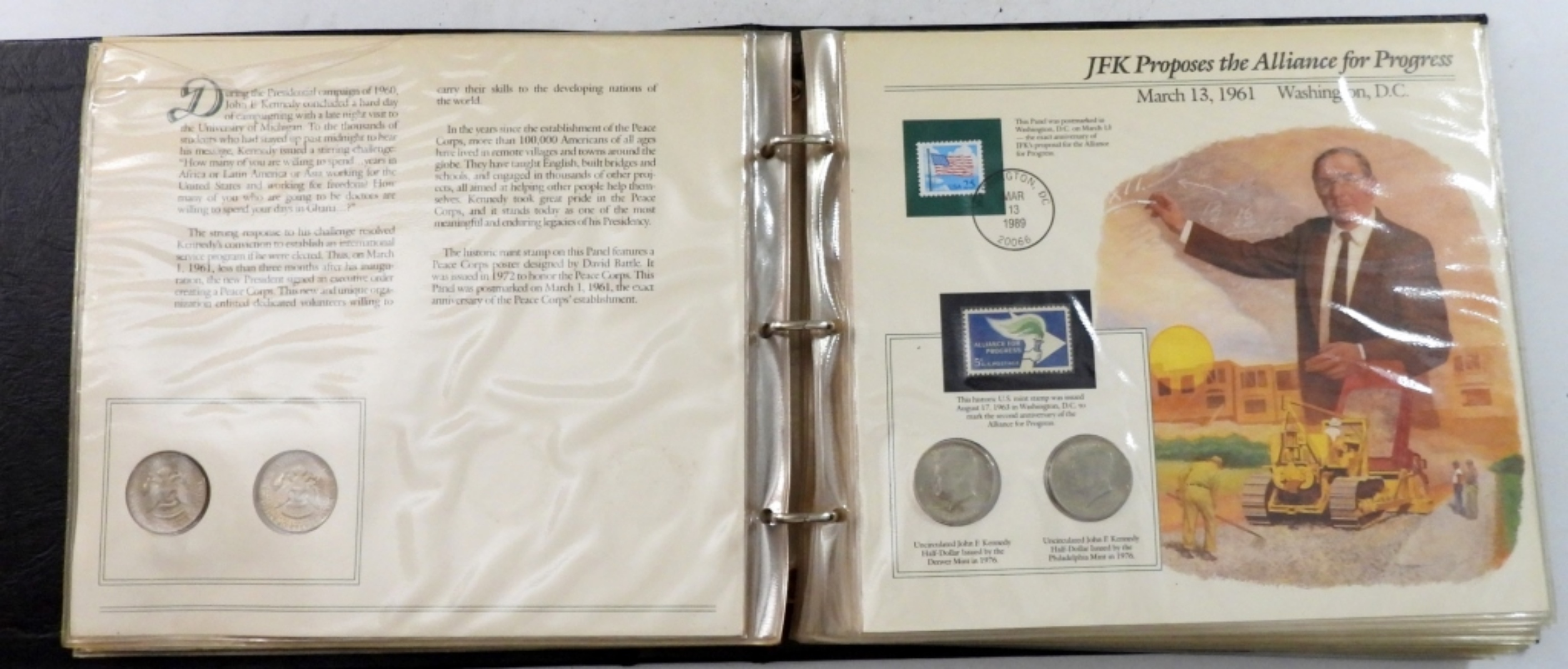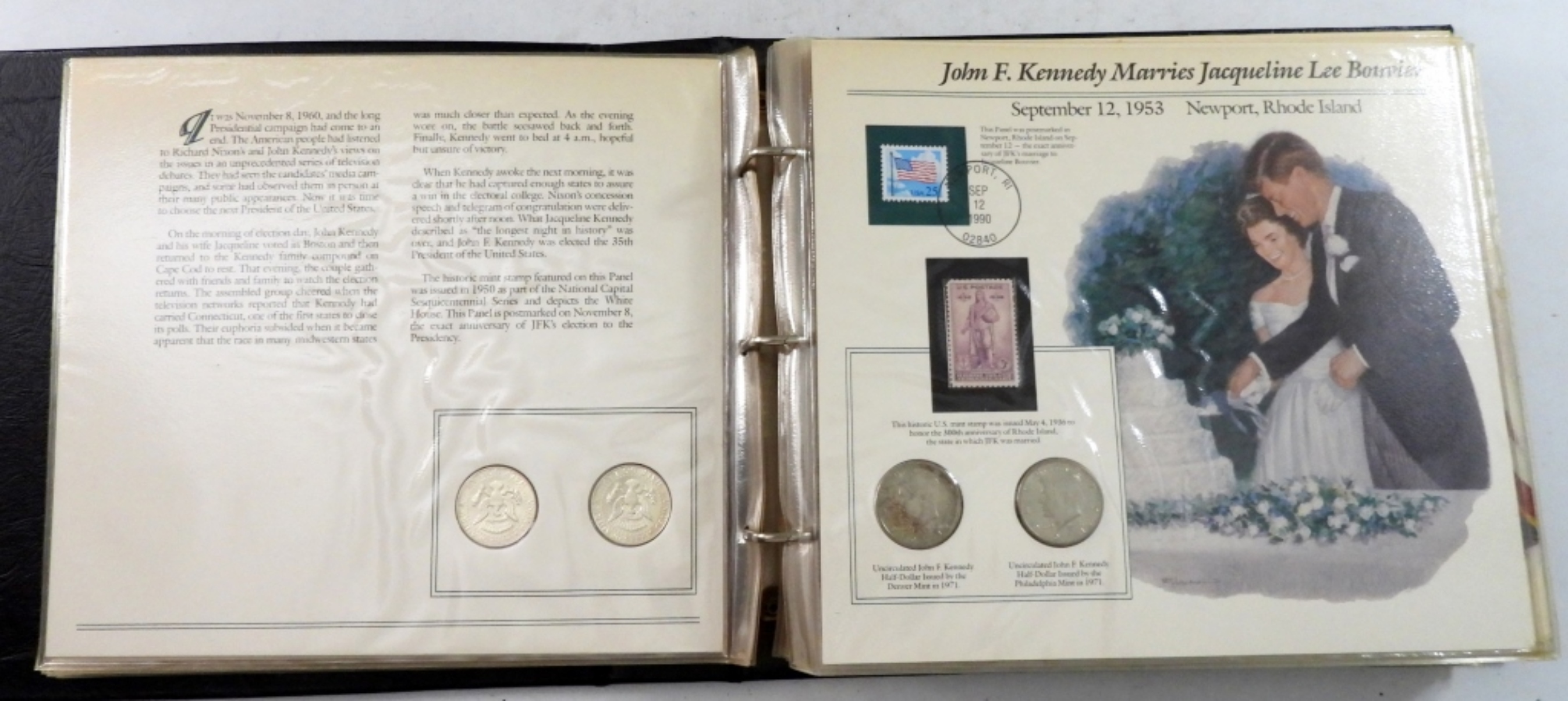 (47) COINS TOTAL WITH STAMPS AND POSTMARKS. JOHN F. KENNEDY UNCIRCULATED U.S. HALF-DOLLAR COLLECTION BY THE POSTAL COMMEMORATIVE SOCIETY