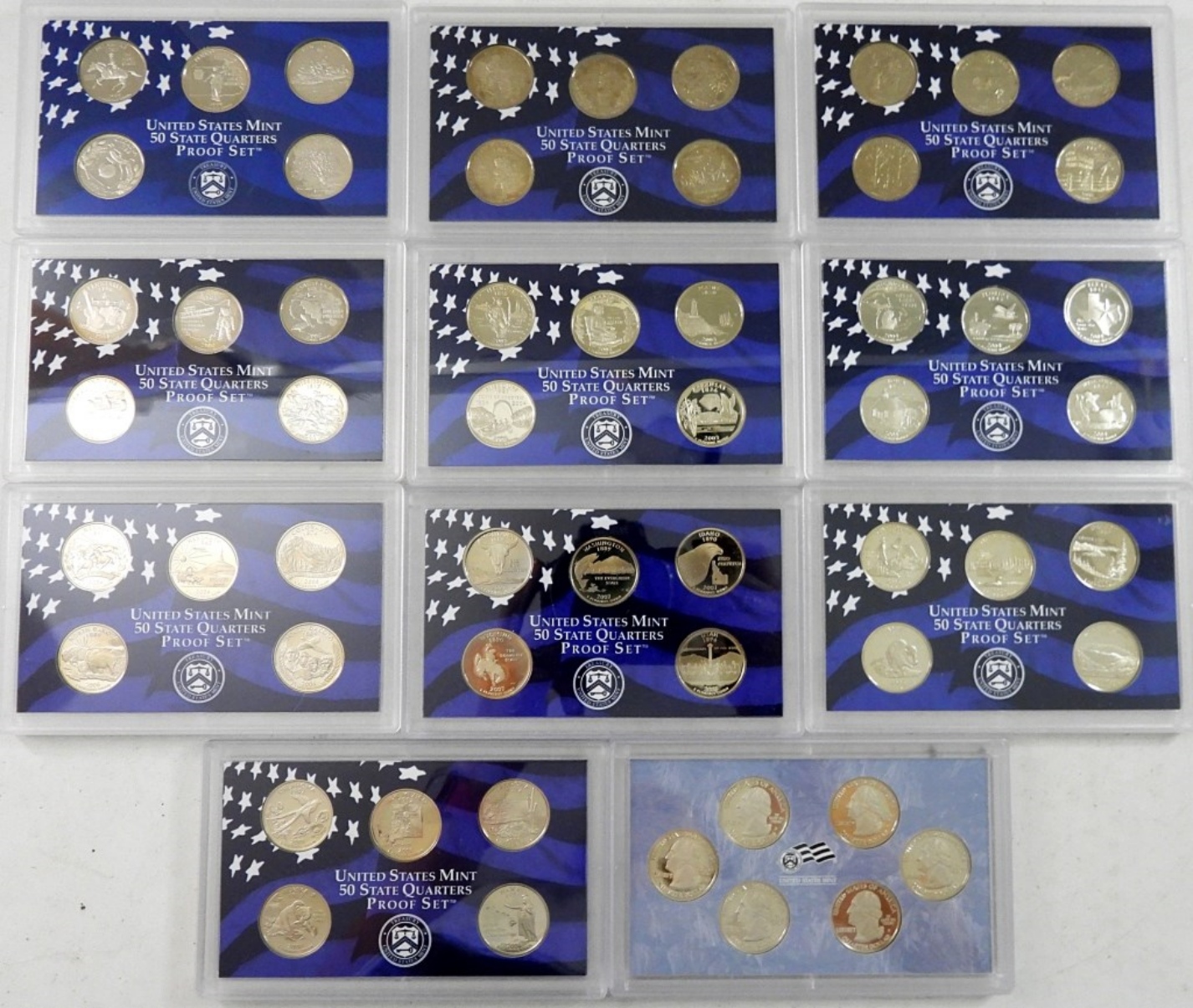 (56) PROOF CLAD QUARTERS IN US MINT SLABS. MISSING OGP.
