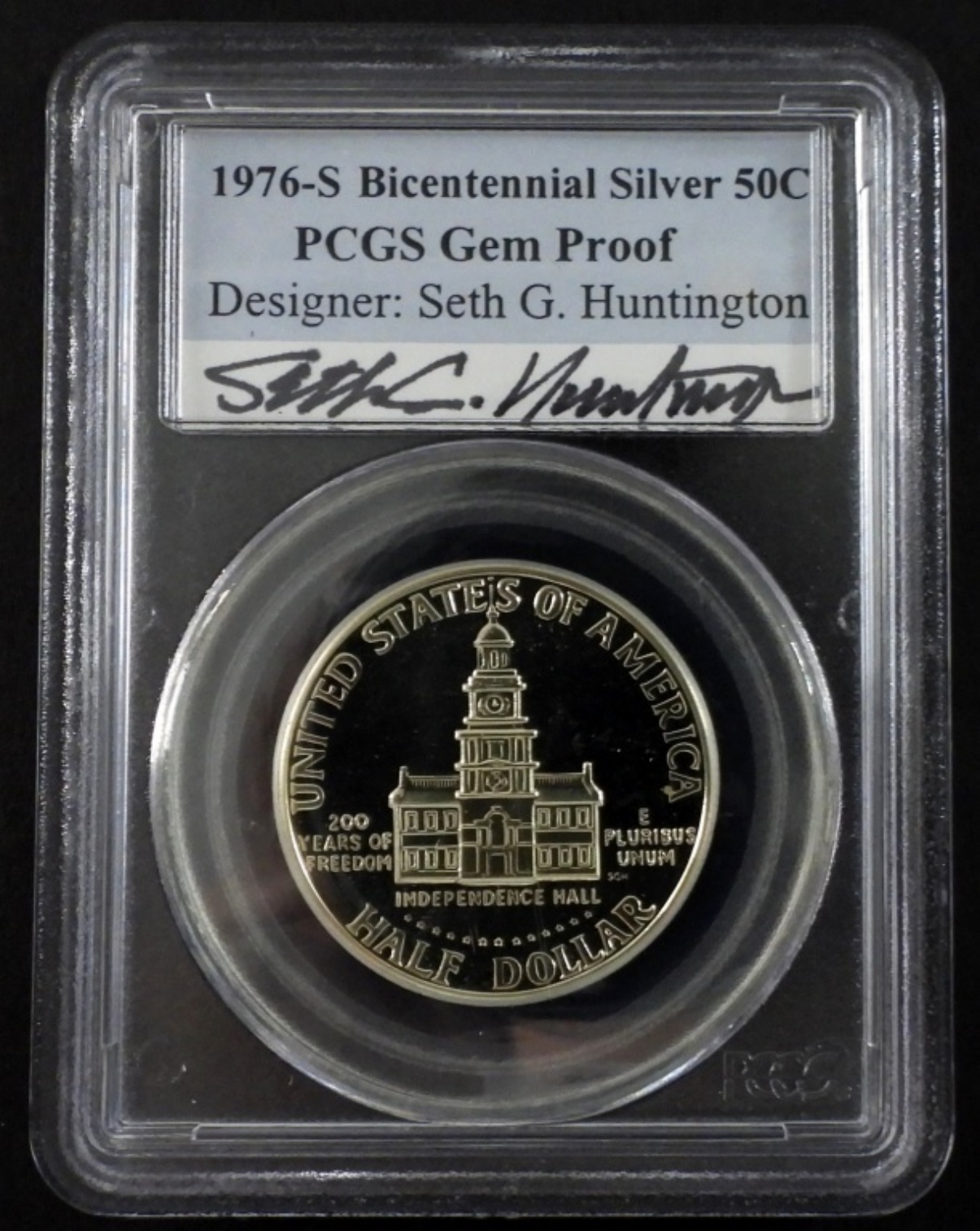 1976-S BICENTENNIAL SILVER 50C PCGS GEM PROOF SIGNED BY SETH G. HUNTINGTON