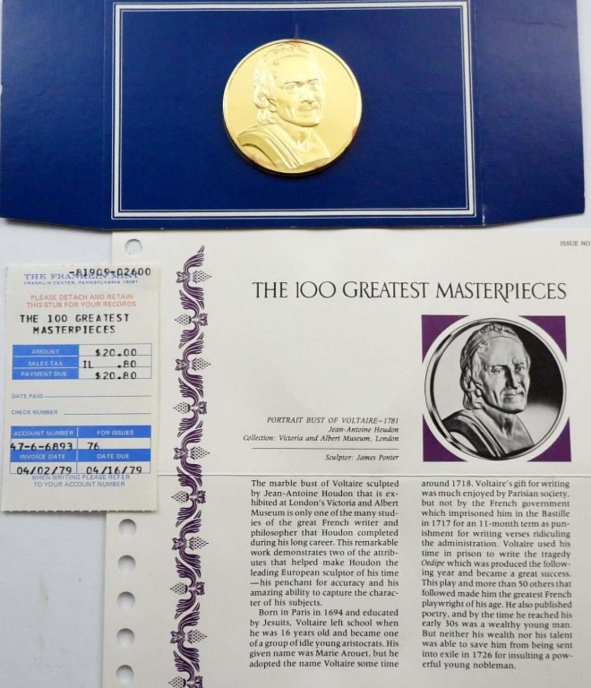 2 ozt ART ROUND – THE 100 GREATEST MASTERPIECES with ORIGINAL ENVELOPE