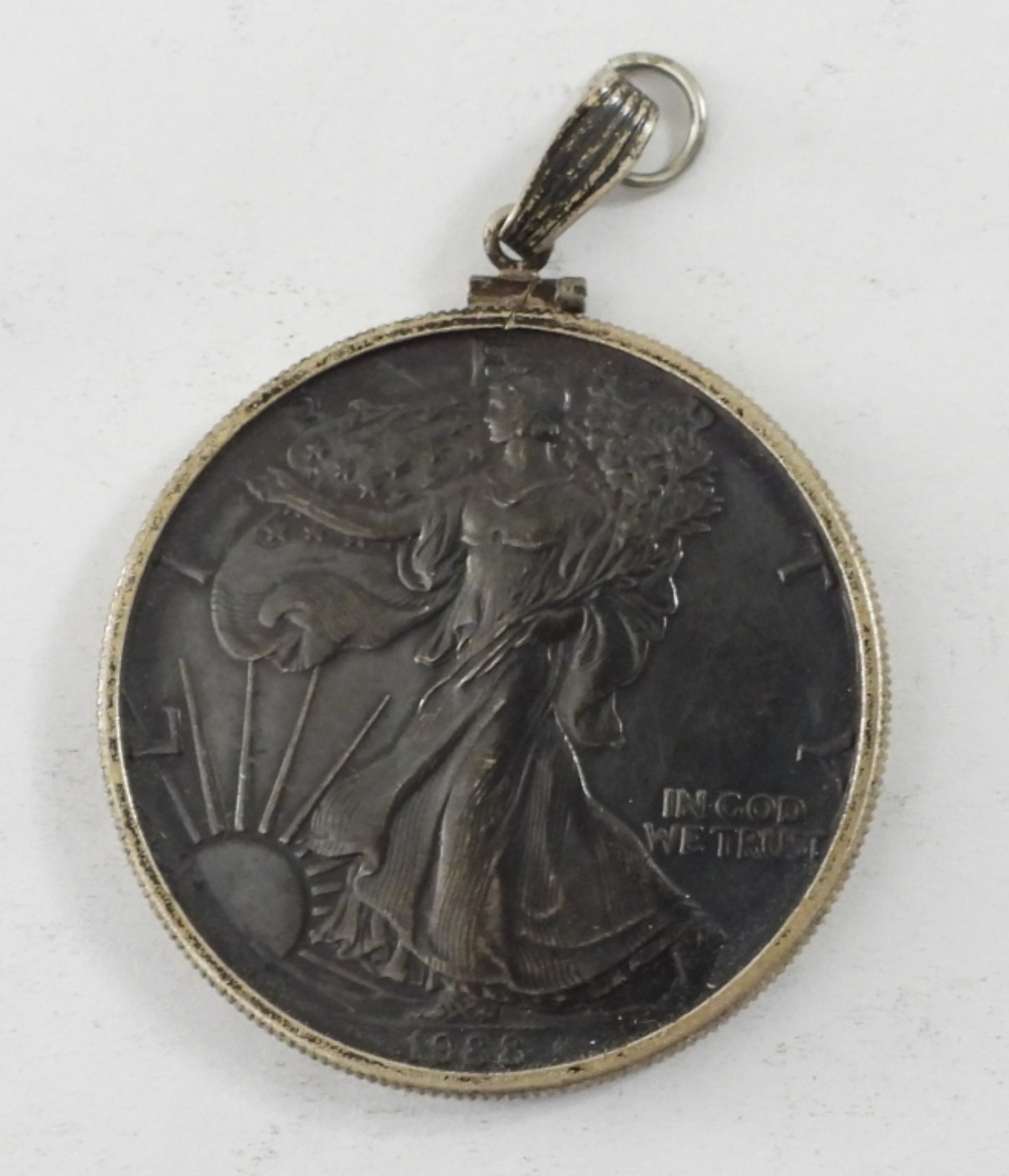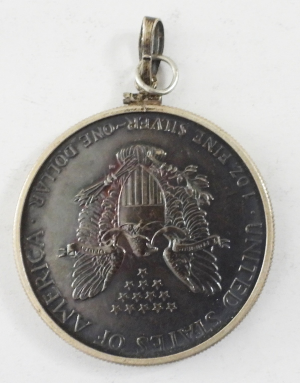 SILVER EAGLE SET IN PENDANT, HEAVY TONING