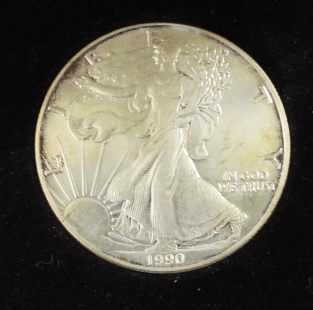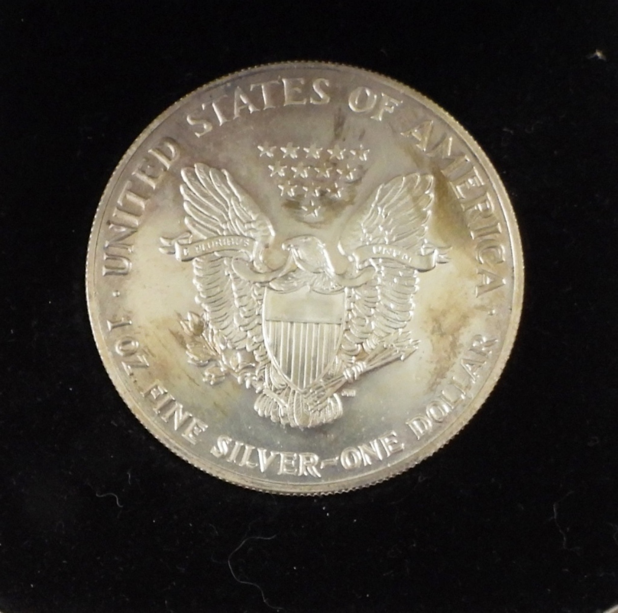 RAW COIN IN VELVET DISPLAY CASE WITH SLEEVE.