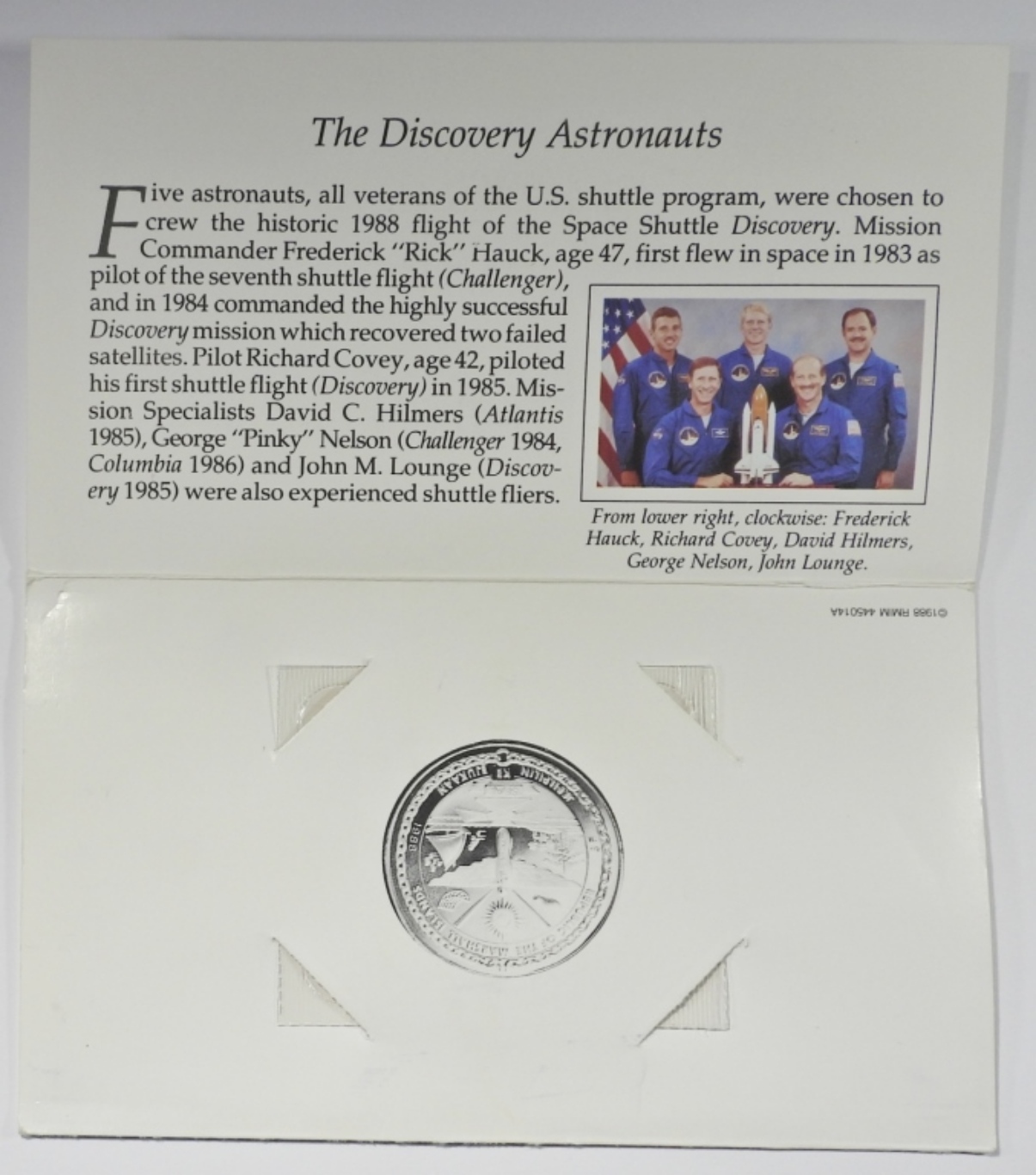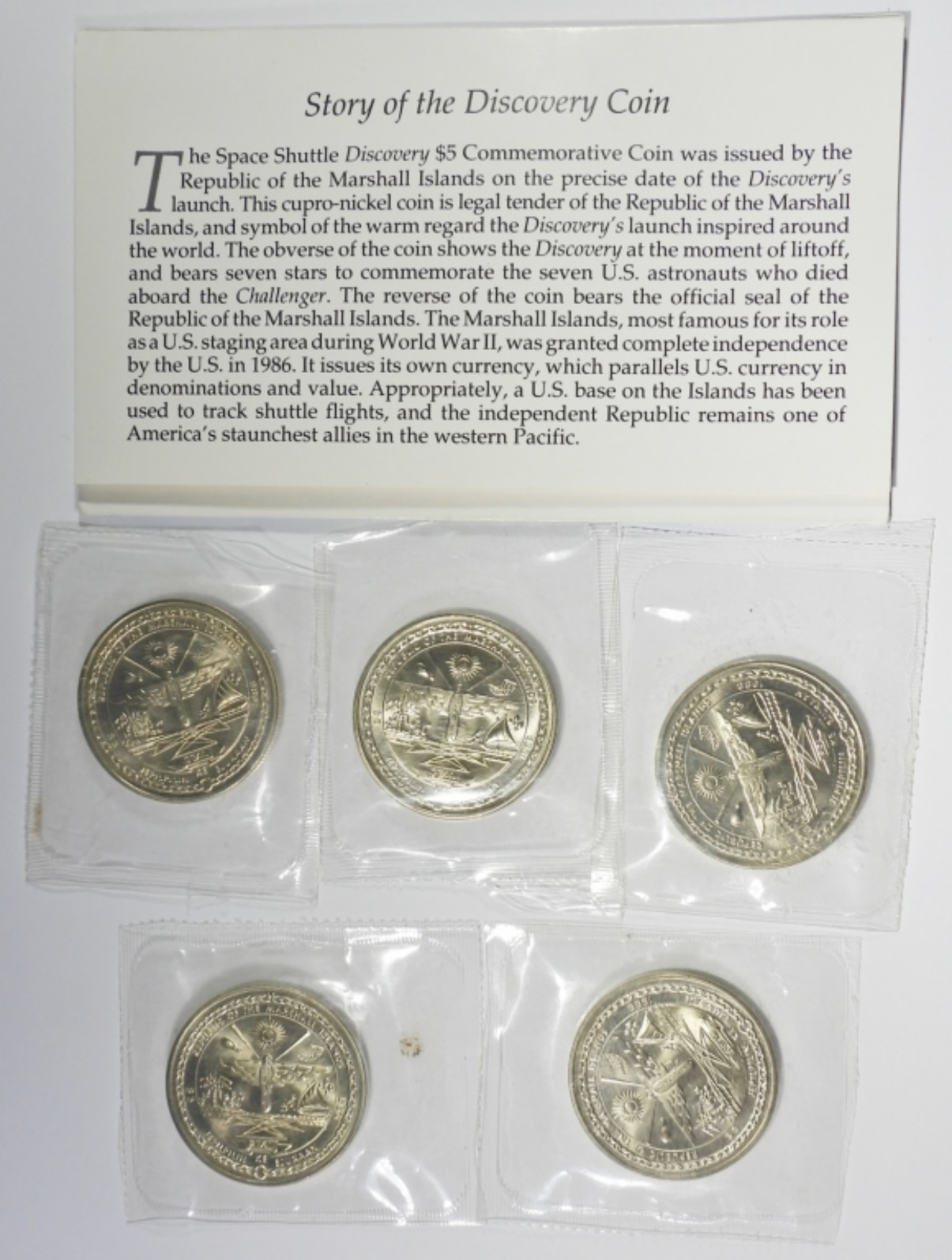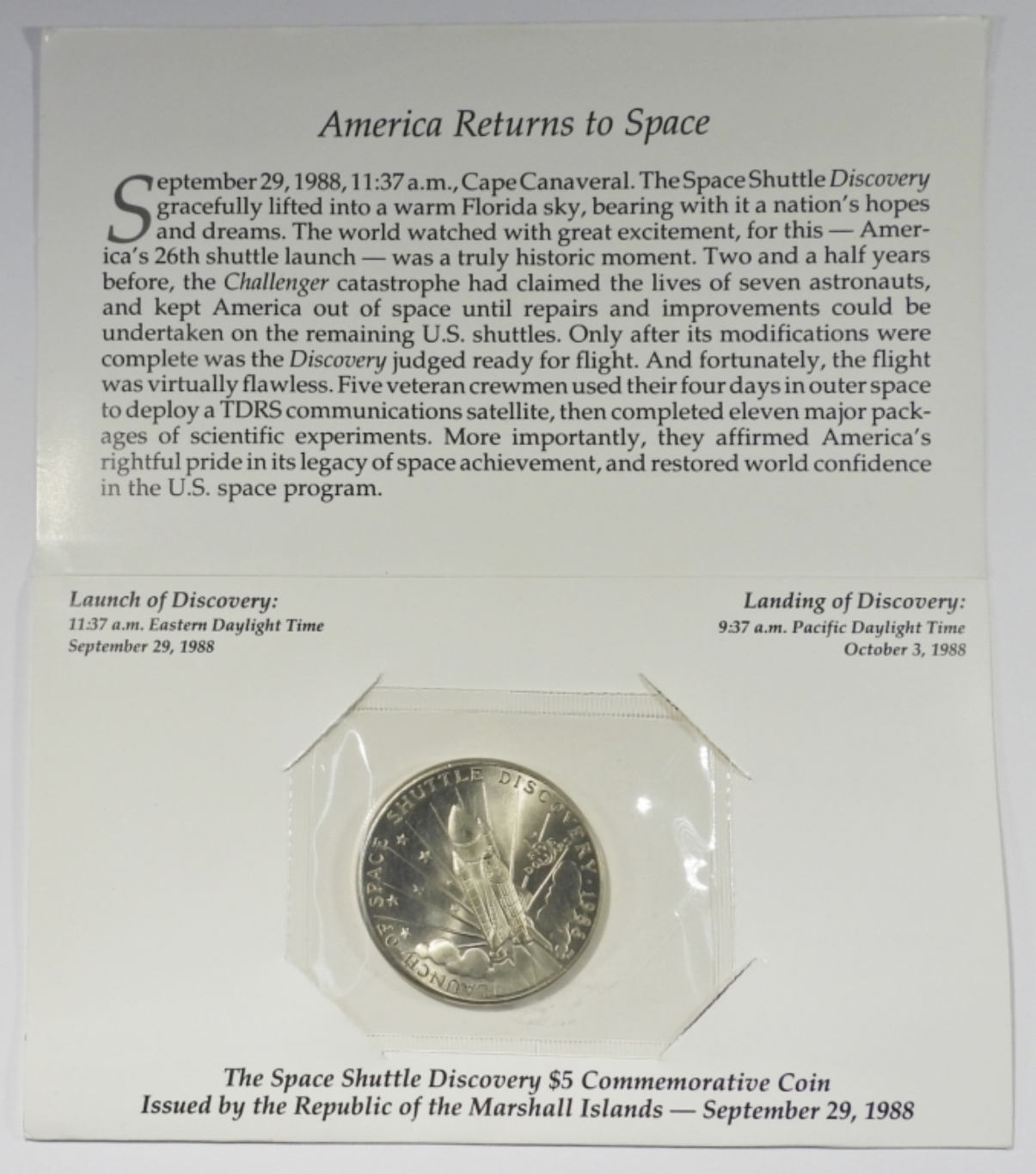 REPUBLIC OF THE MARSHALL ISLANDS SPACE SHUTTLE DISCOVERY COMMEMORATIVE COIN. (1) IN OGP.