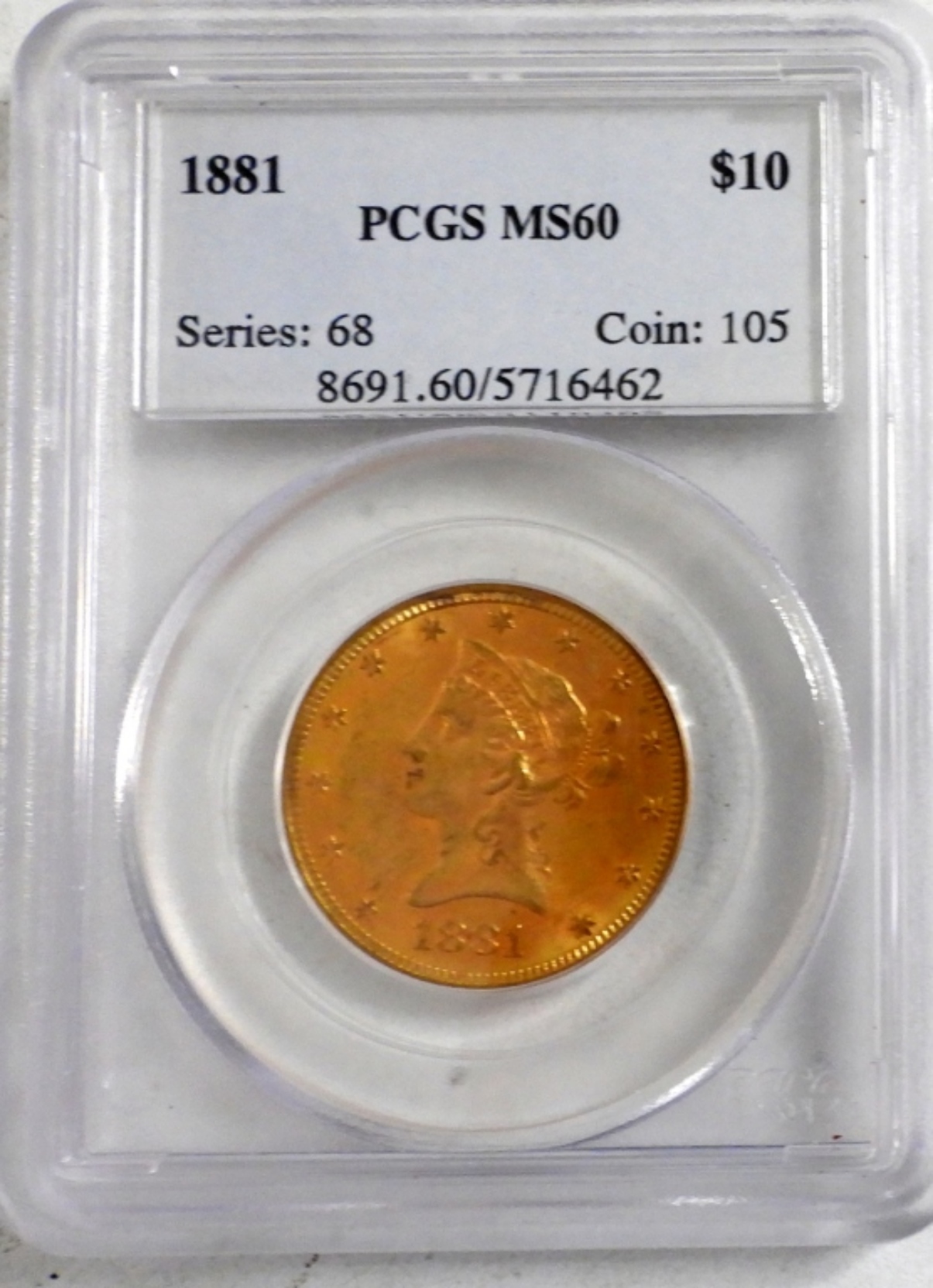 1881 $10 LIBERTY HEAD GOLD COIN PCGS MS60