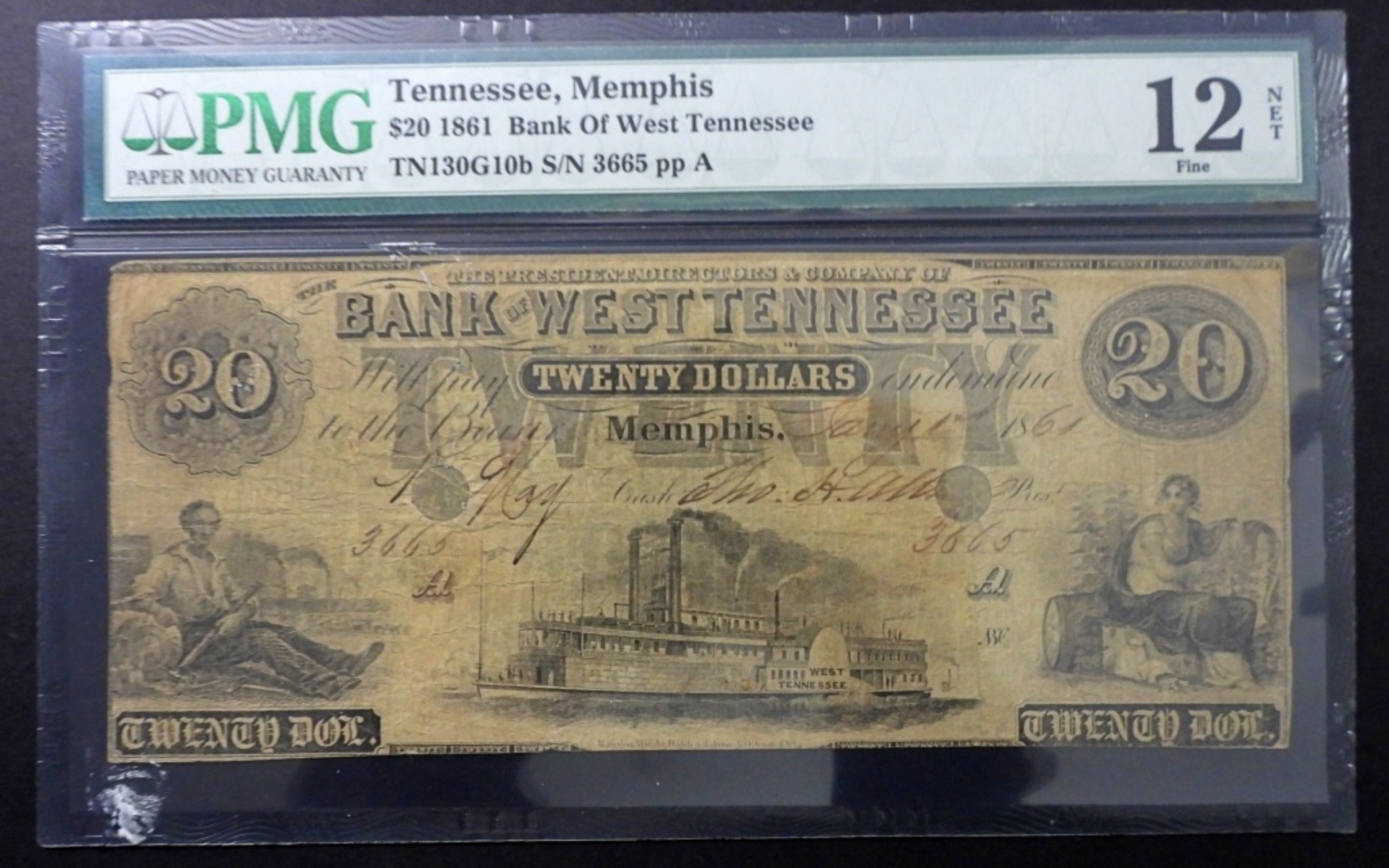 TWENTY DOLLARS, BANK OF WEST TENNESSEE, TN130G10b S/N 3665 PP A, 12 FINE