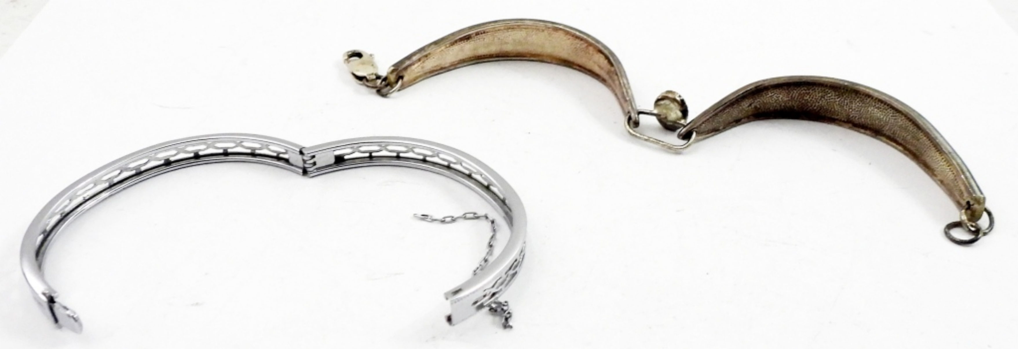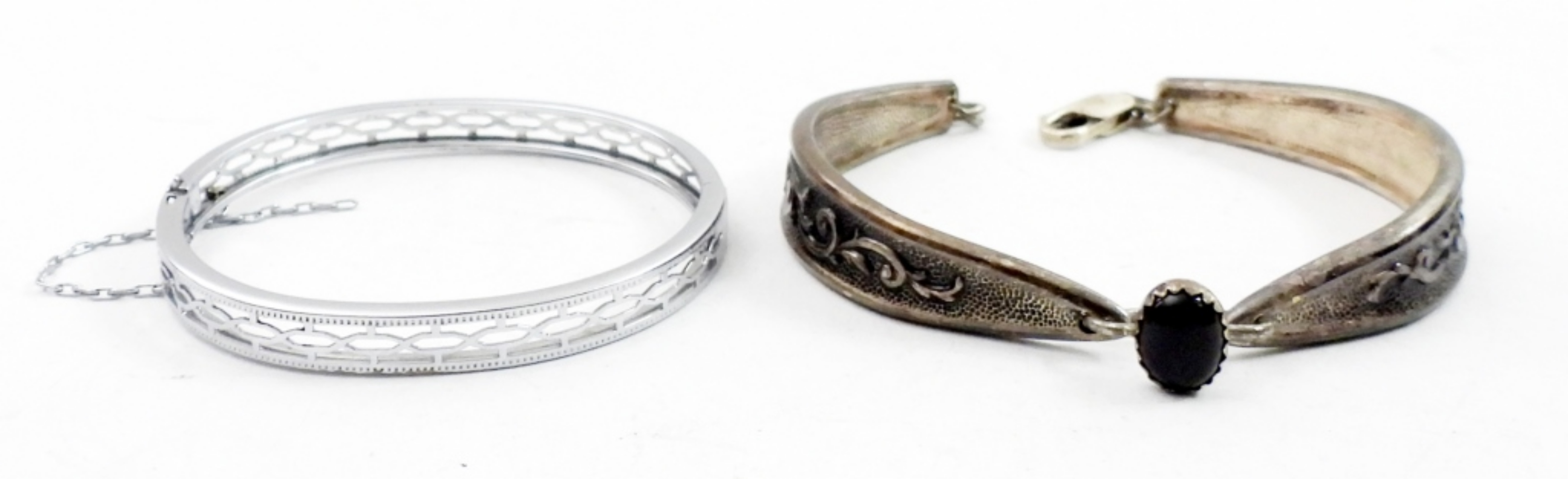 TWO SMALL STERLING SILVER BRACELETS, ONE WITH BLACK ONYX GEMSTONE. 5″ & 6.5″ BRACELETS. 15.4 DWT
