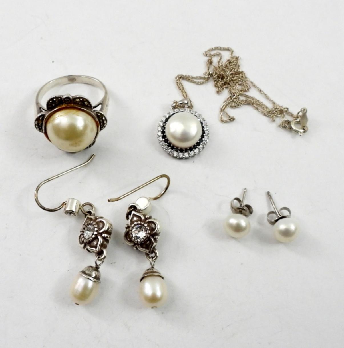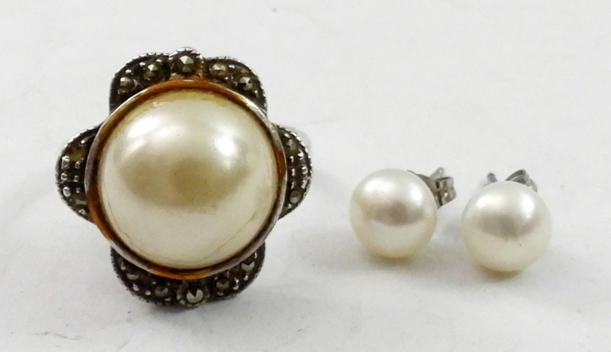 EARRINGS plus FAUX PEARL RING SIZE 8 (11 DWT)
