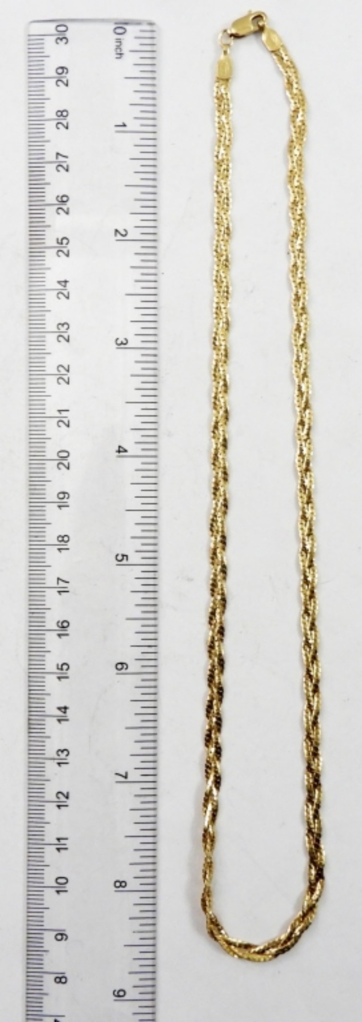 BEAUTIFUL 12K GOLD TONE BRAIDED CHAIN, 18″. 4.6 DWT