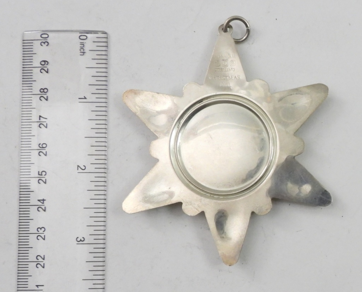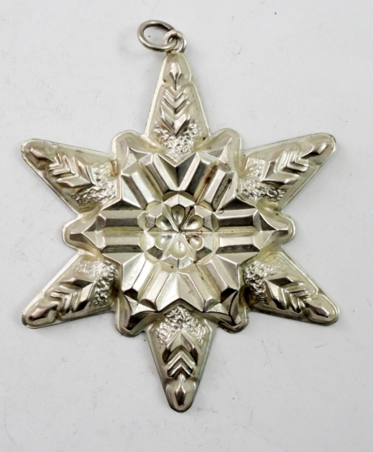 GORHAM STERLING SILVER SNOWFLAKE CHRISTMAS ORNAMENT, 1970. 3.5″x3″. 13.1 DWT