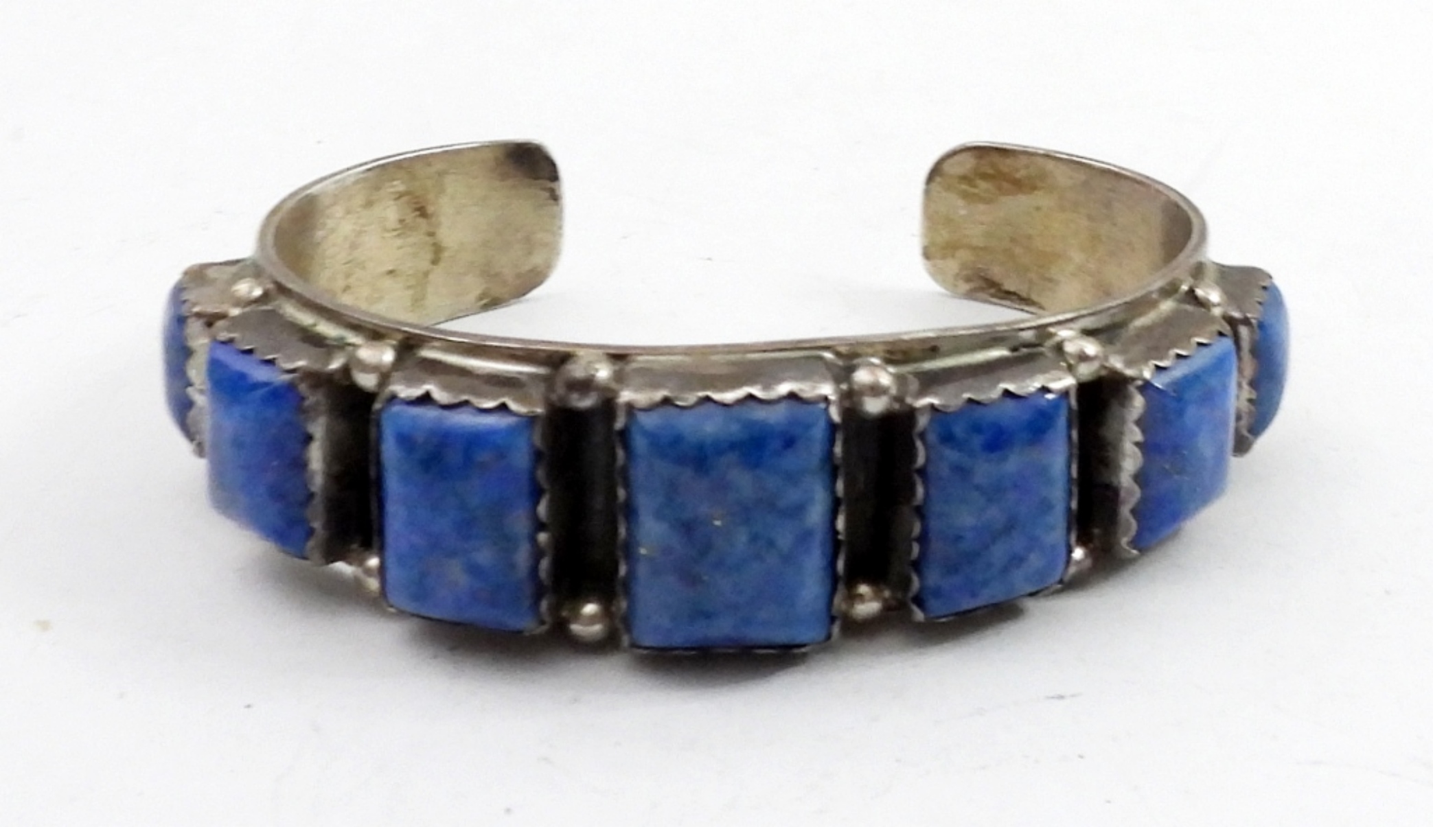 TOM LEWIS (SIGNED) STERLING LAPIS CUFF STYLE BRACELET, VINTAGE! VERY NICE! 30 DWT
