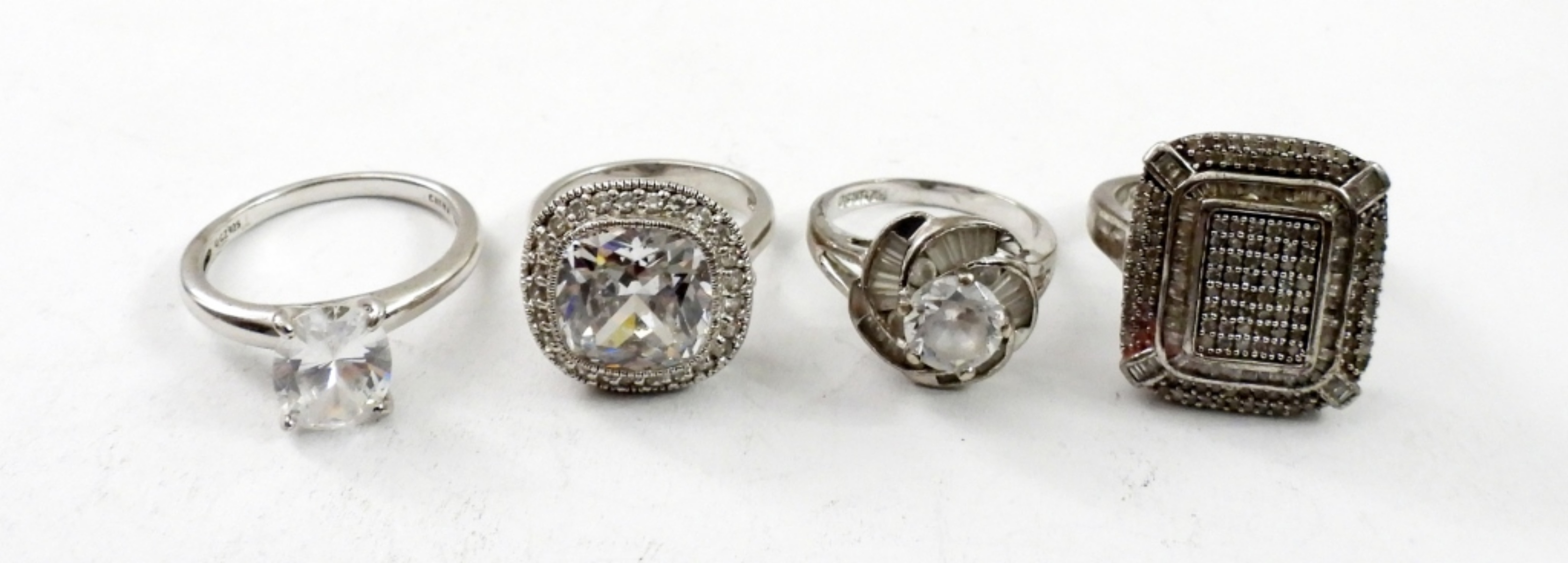 SIX STERLING SILVER BRIDAL STYLE RINGS. SIZES 6, 7, 8, 9. 22.4 DWT