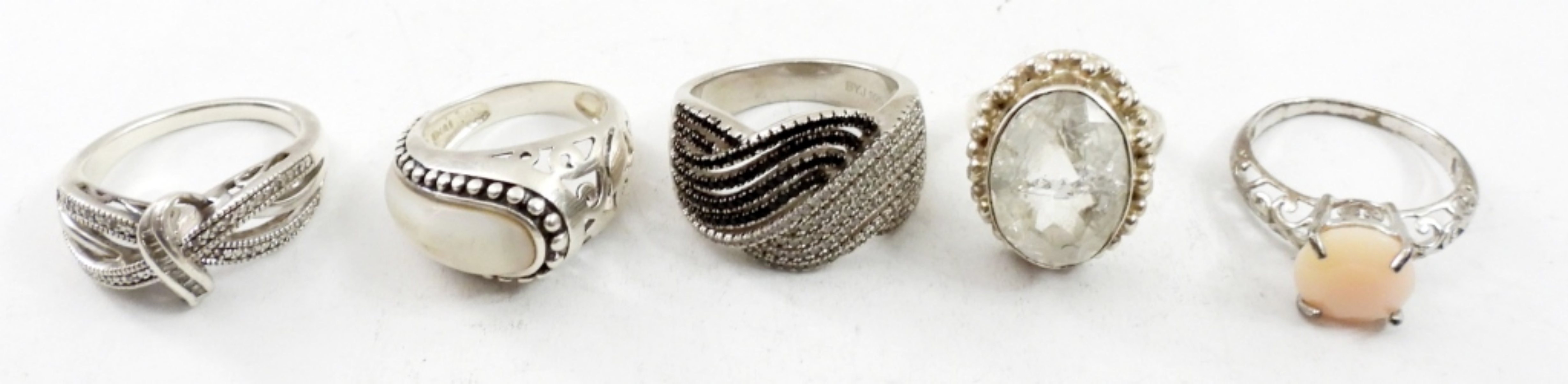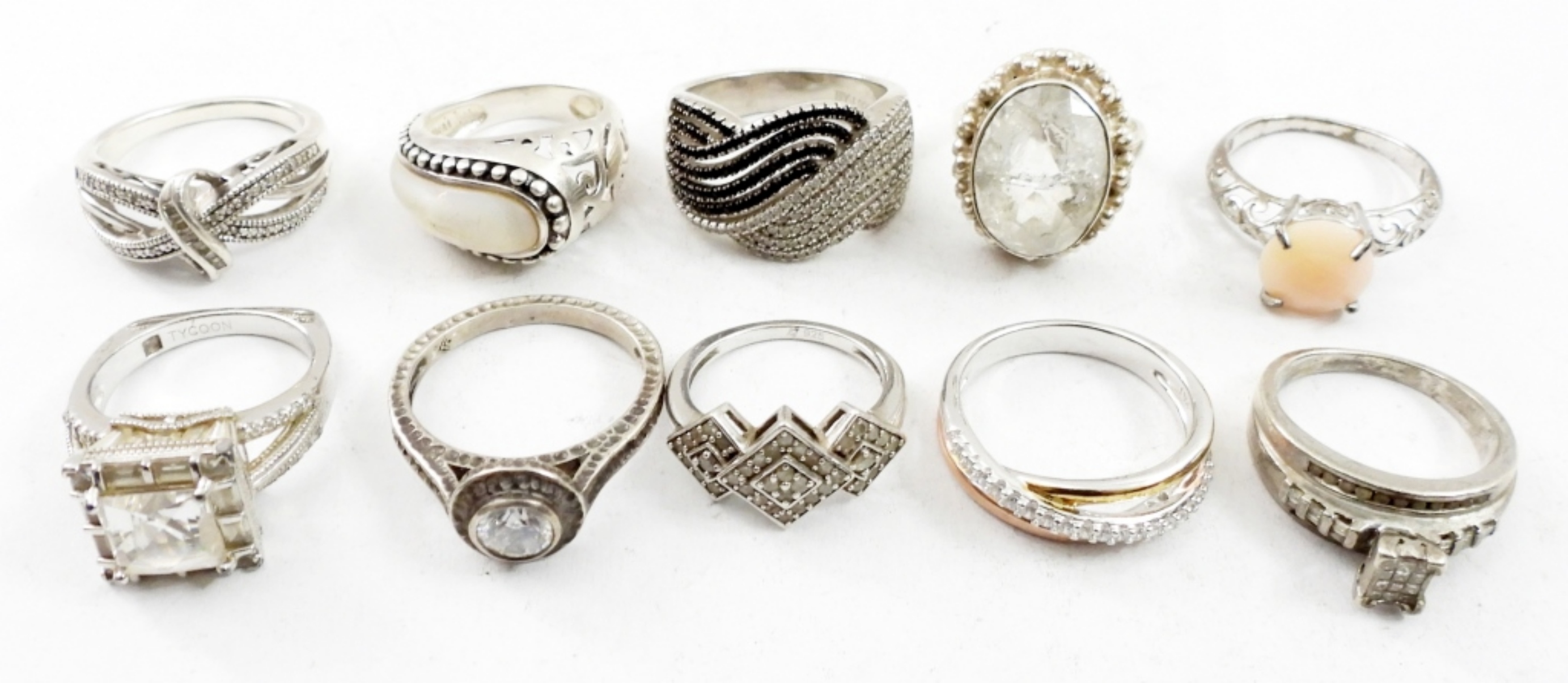 TEN VINTAGE STERLING BRIDAL STYLE RINGS, SIZES 6-10. 35.9 DWT