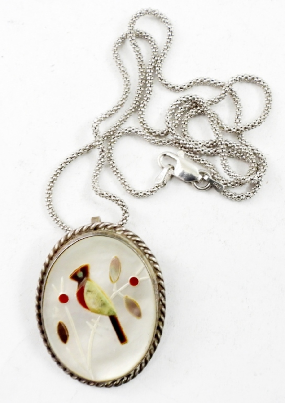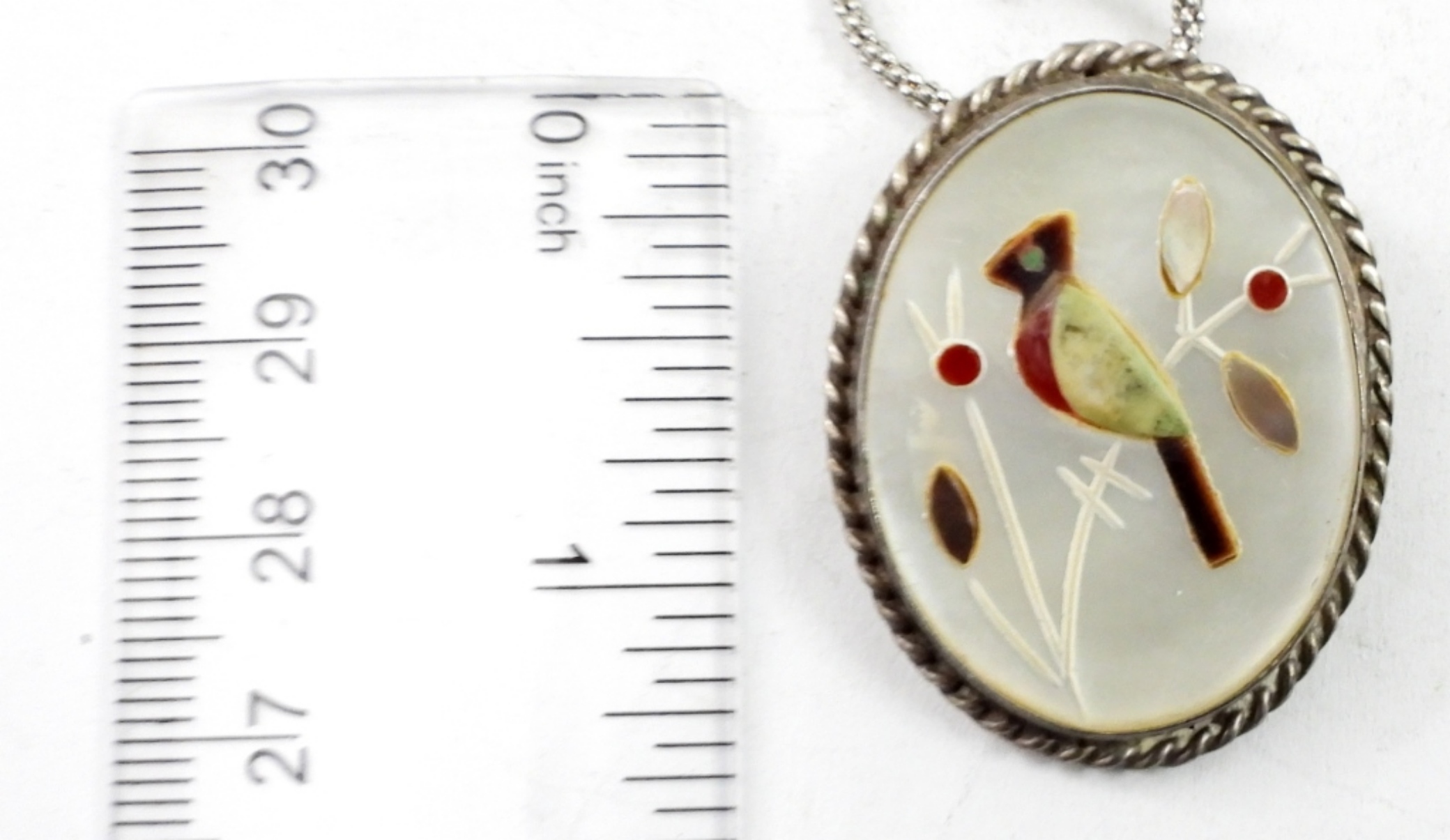 GORGEOUS VINTAGE ZUNI PENDANT ON A 19″ STERLING CHAIN. 8.2 DWT