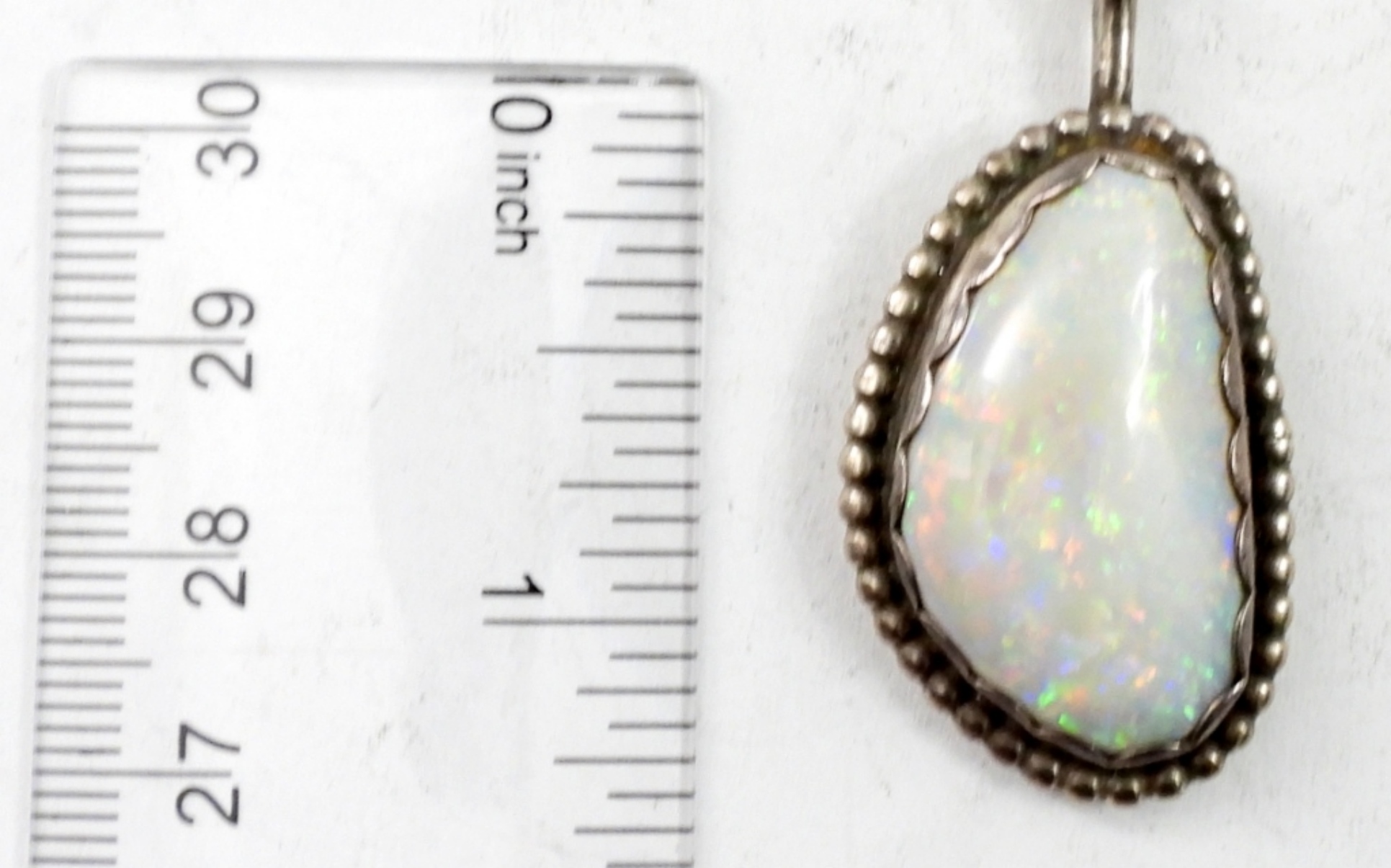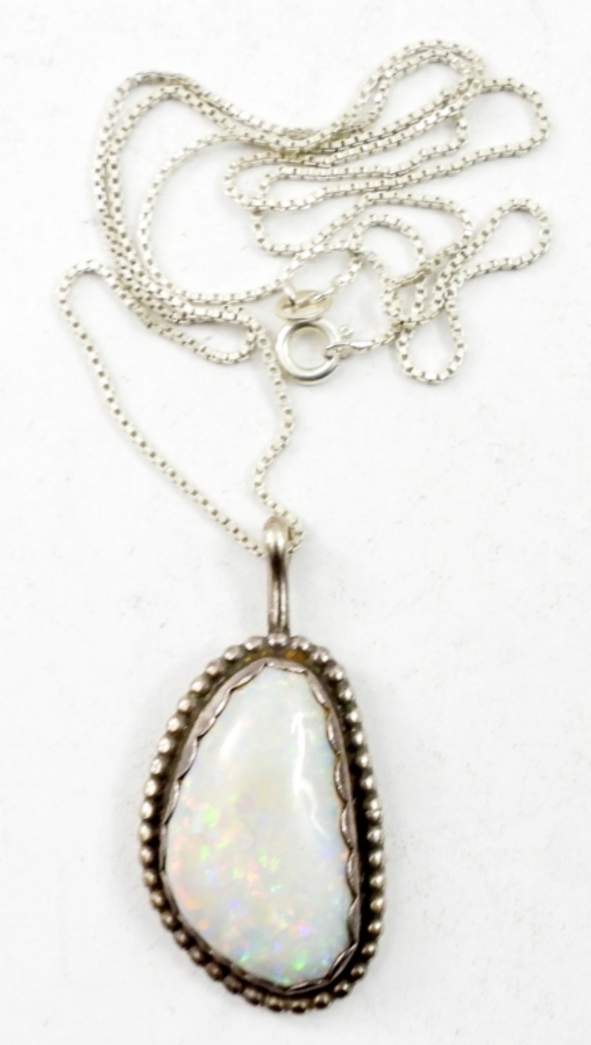 VINTAGE STERLING SOUTHWEST/NATIVE AMERICAN SIGNED OPAL PENDANT. STERLING CHAIN IS 20″, PENDANT IS 1.5″x1″. 8.3 DWT