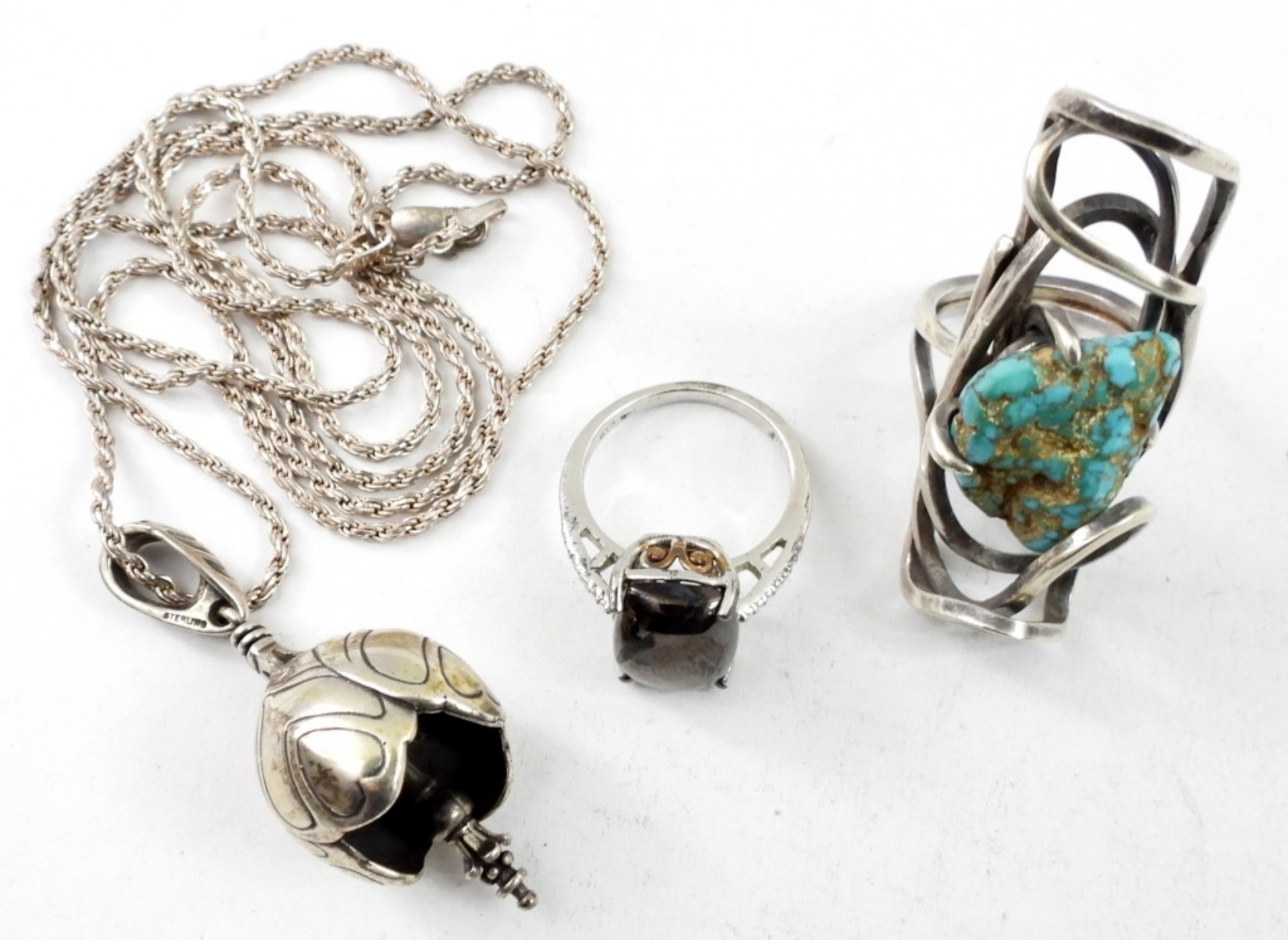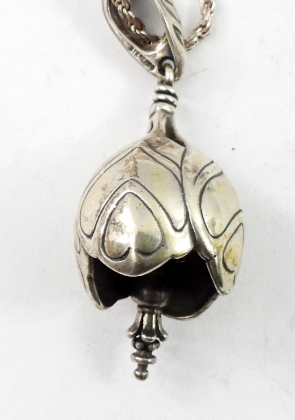 “GRB BELLS” CROCUS BELL PENDANT ON A 30″ STERLING CHAIN. TWO RINGS SIZES 6.5 & 7. 24.6 DWT