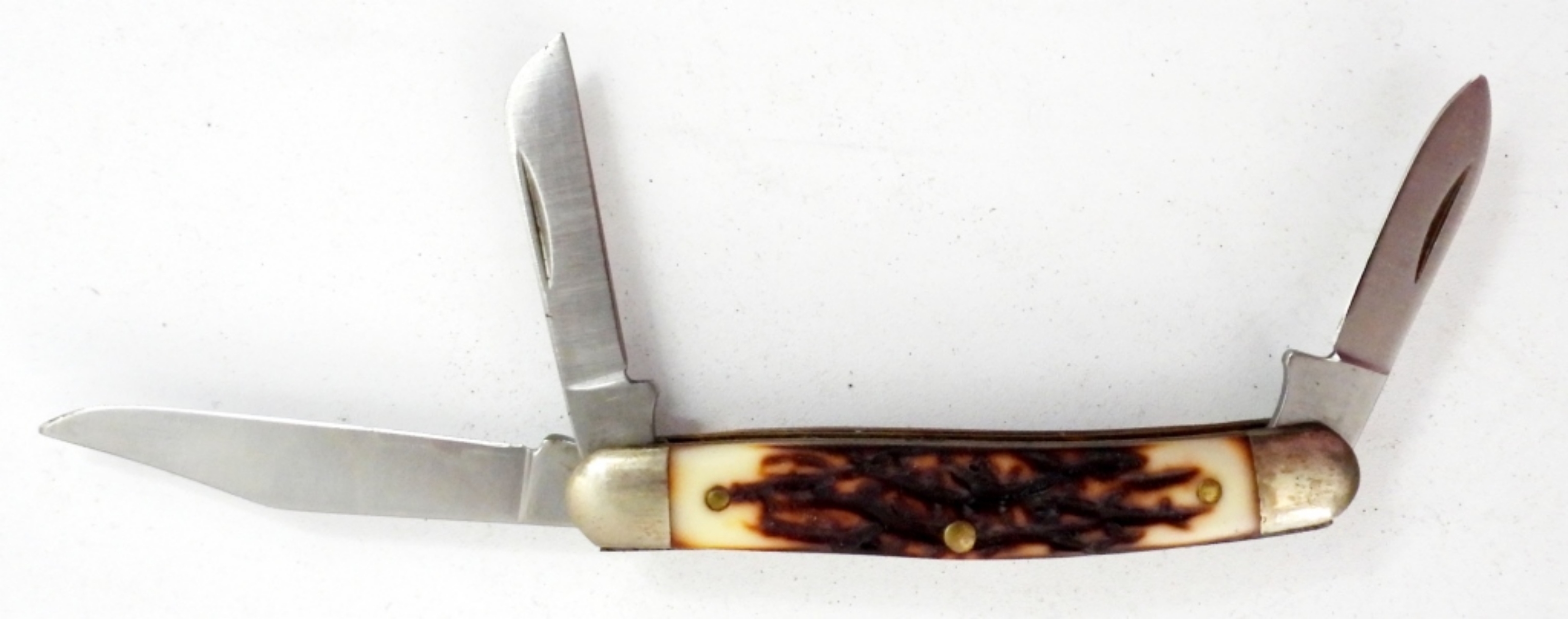 SCHRADE UNCLE HENRY J.R. POCKET KNIFE, 807-UH 3 BLADE. SHELL LOGO ON THE MAIN BLADE. COMES WITH ORIGINAL BOX AND PAPERWORK. 3″ CLOSED.