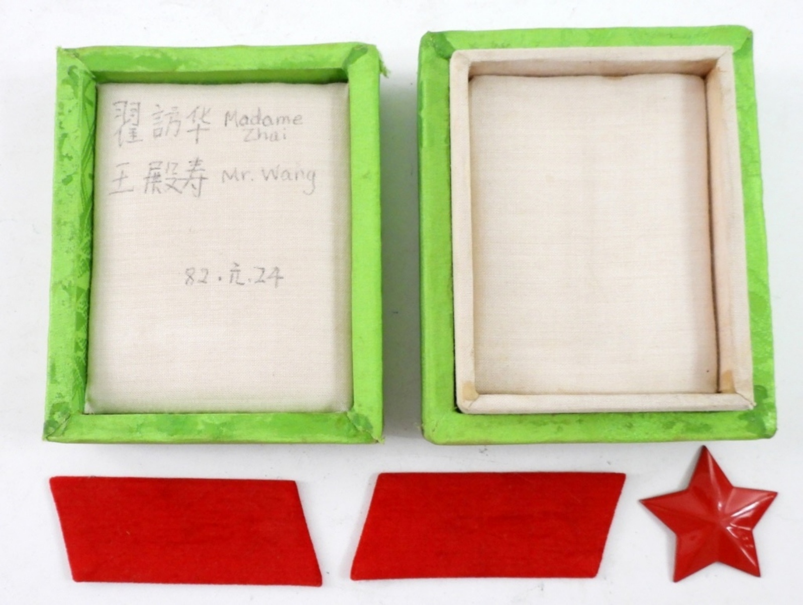 RED STAR & WRITING INSIDE? MADAME ZHAI & Mr. WANG? & RED FELT BARS? – WHAT IS THIS MYSTERY LOT