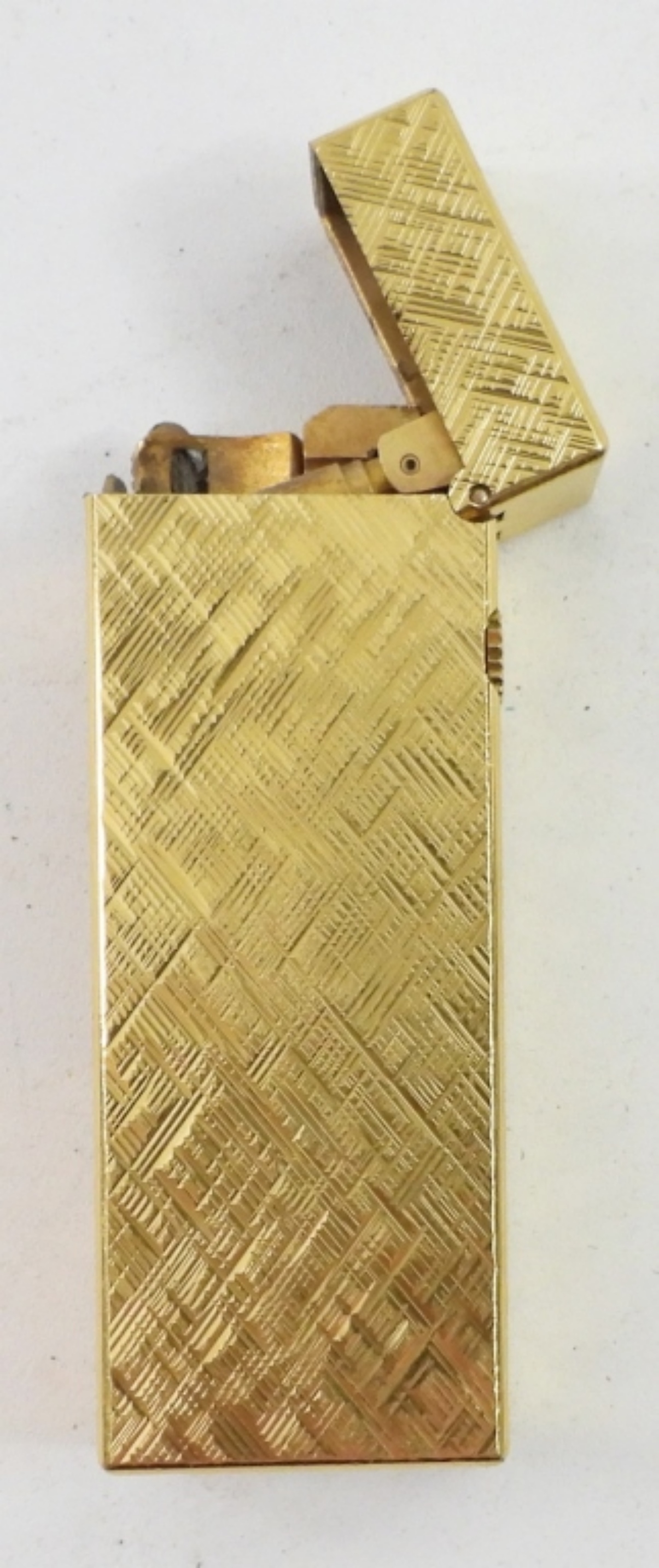 DUNHILL ROLLAGAS LIGHER, FLORENTINE GOLD PLATED. 2.5″ x 1″.