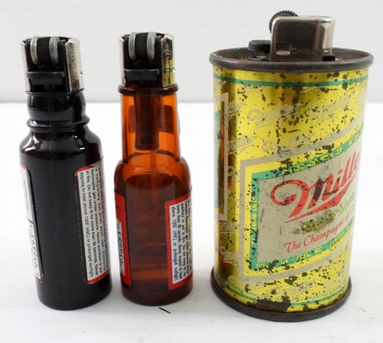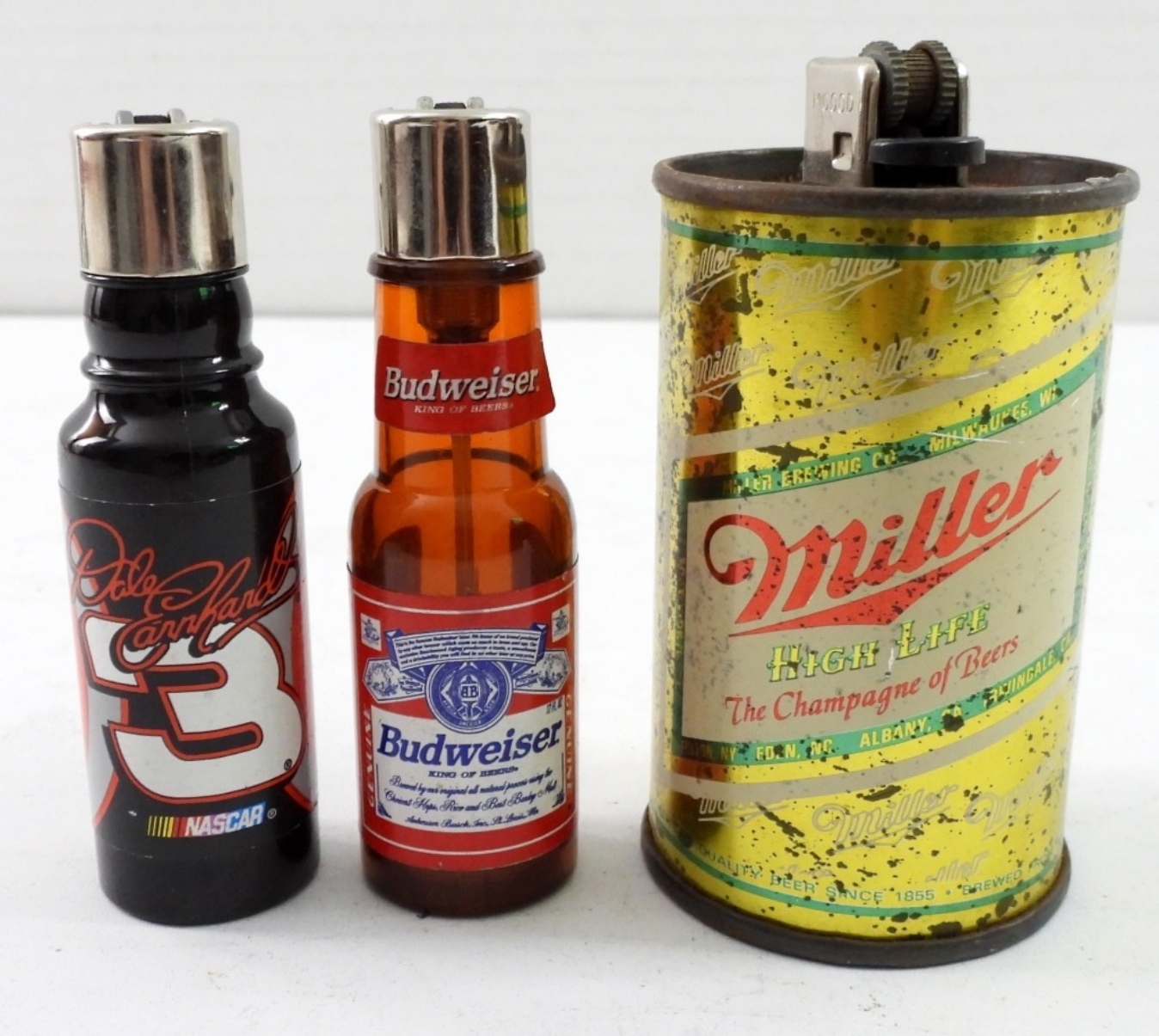 THREE NOVELTY LIGHTERS. DALE EARNHARDT, MILLER & BUDWEISER
