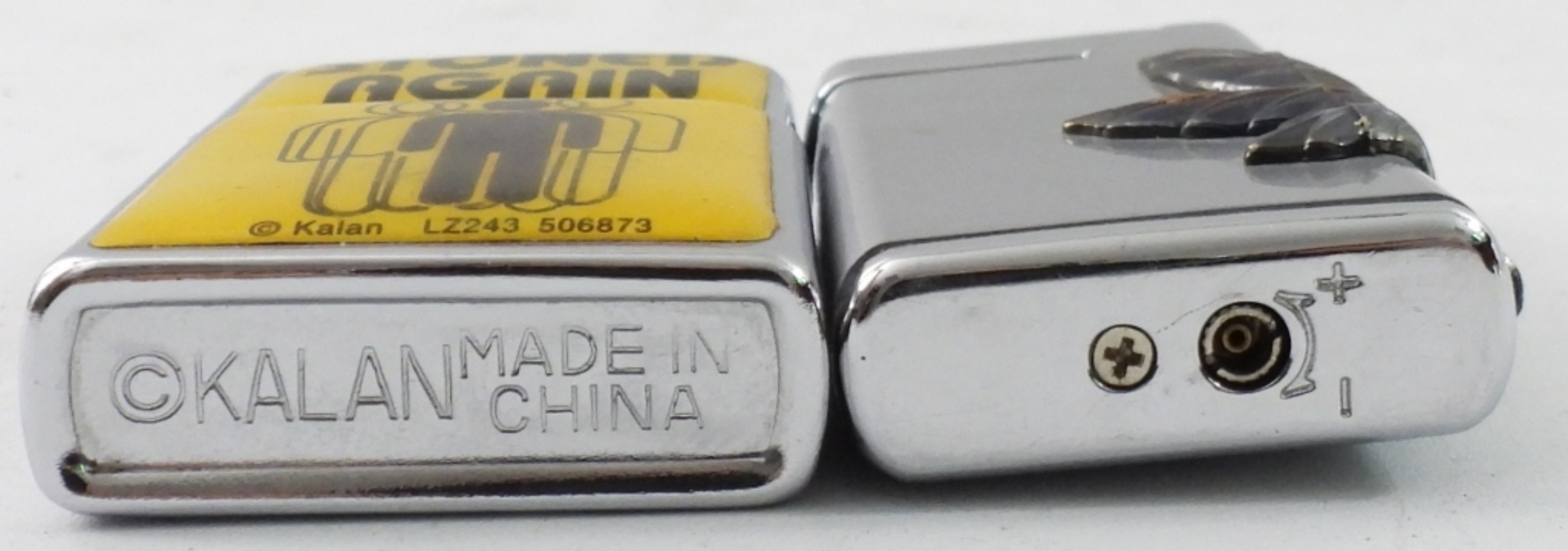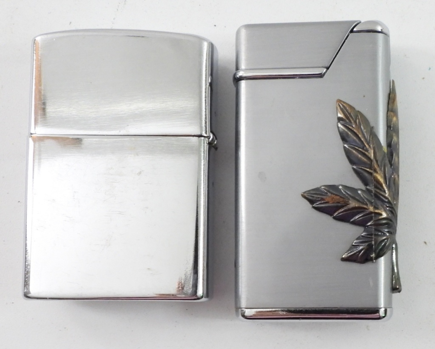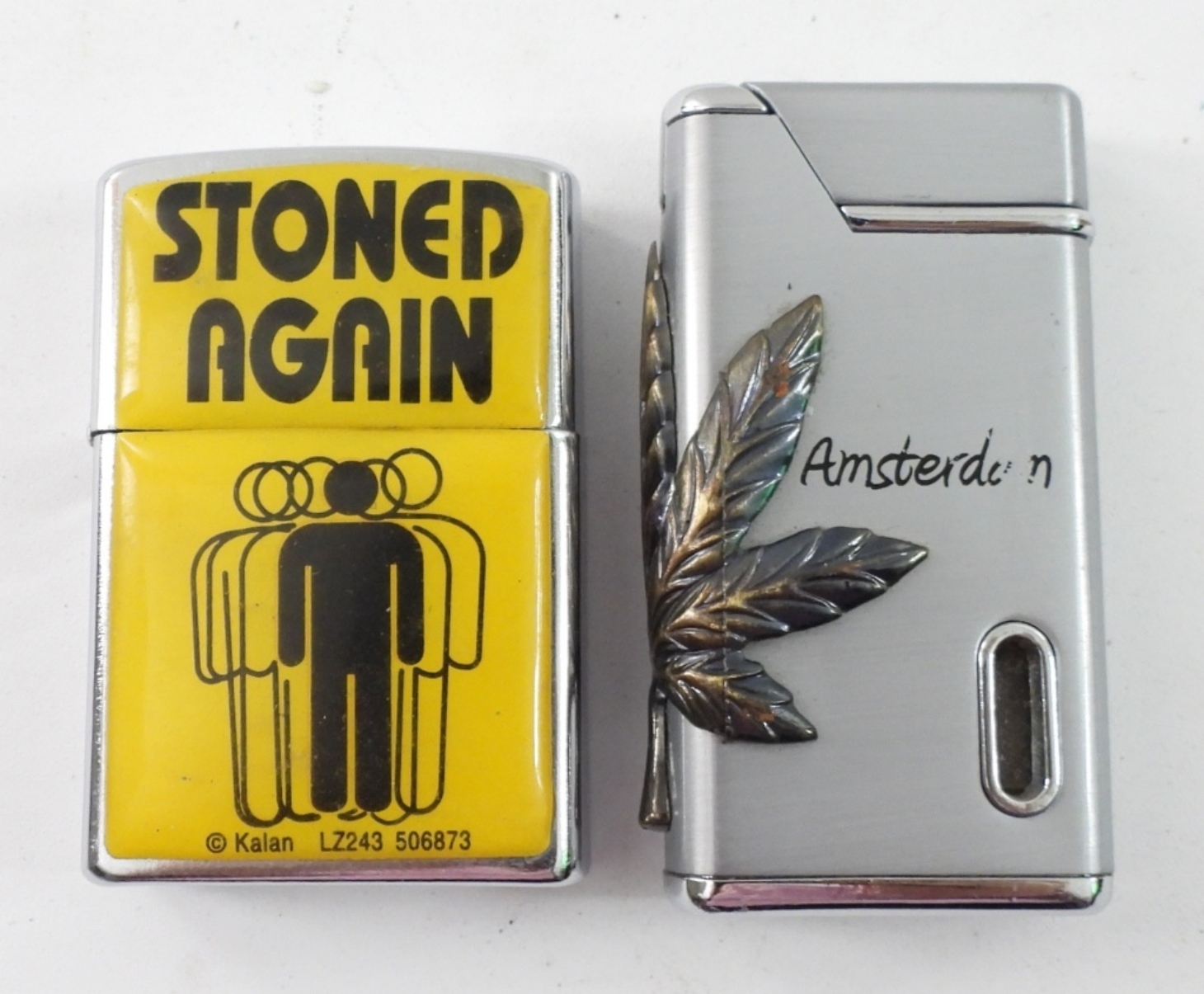 TWO MARIJUANA LIGHTERS, “STONED AGAIN” & “AMSTERDAM” WITH POT LEAF.