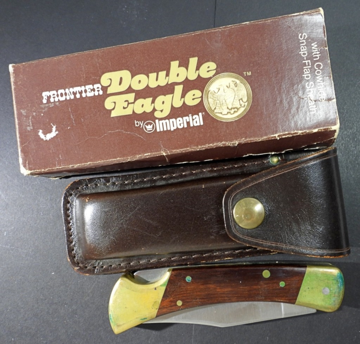 GREAT CONDITION WOODEN HANDLE WITH ORIGINAL BOX AND LEATHER SHEATH CASE
