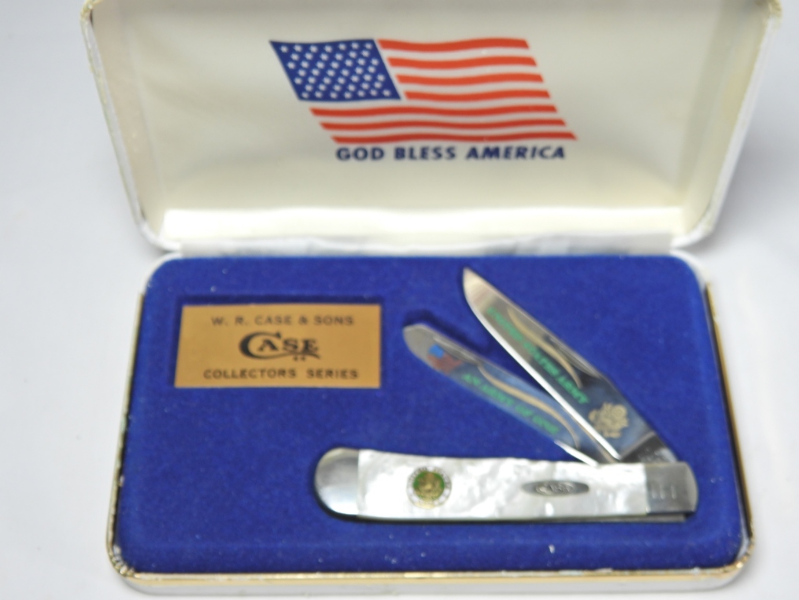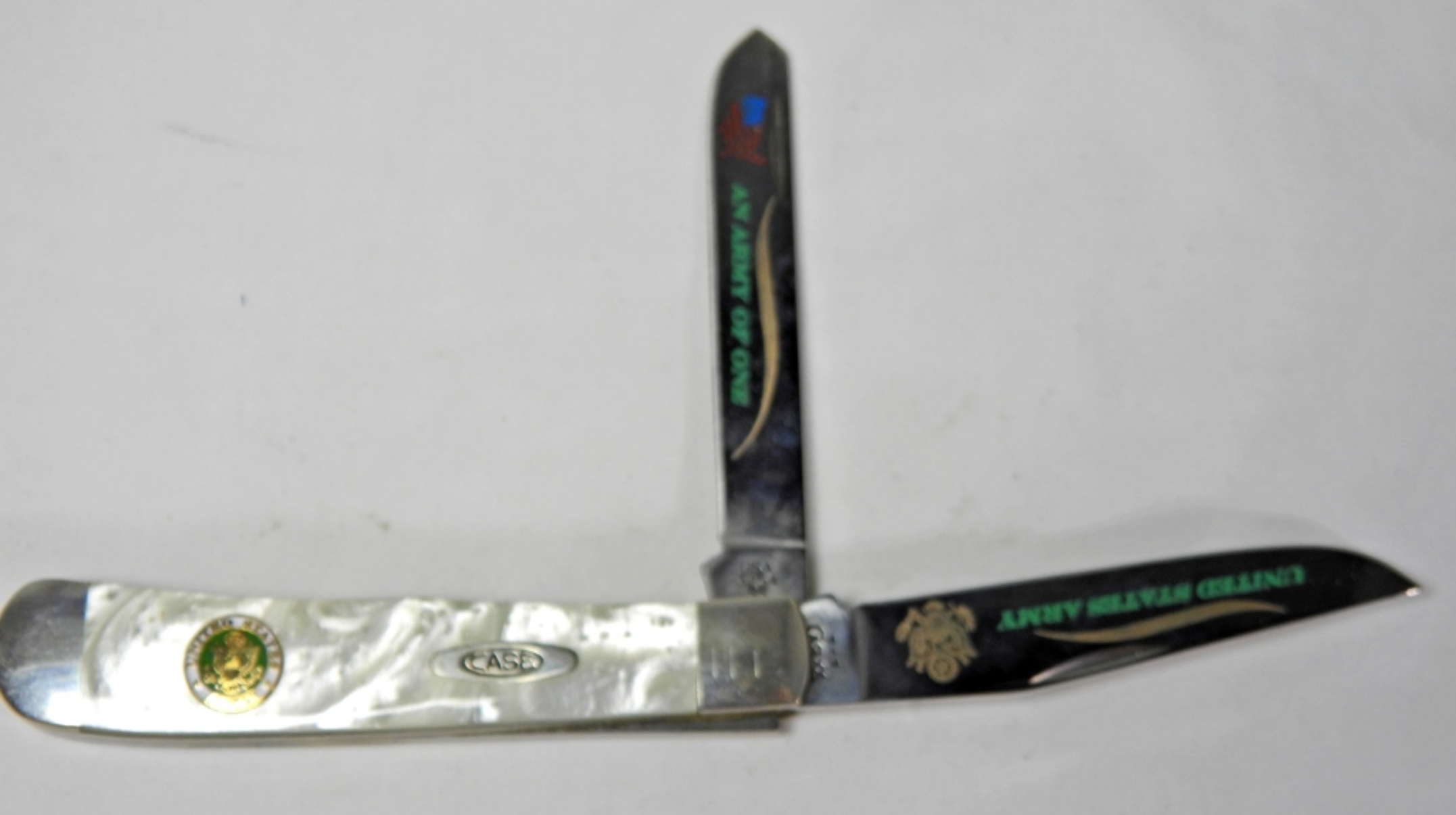 3254 SS – BEAUTIFUL PIECE WITH UNITED STATES ARMY AN ARMY OF ONE ON BLADES – OUTER CASE DOES SHOW WEAR
