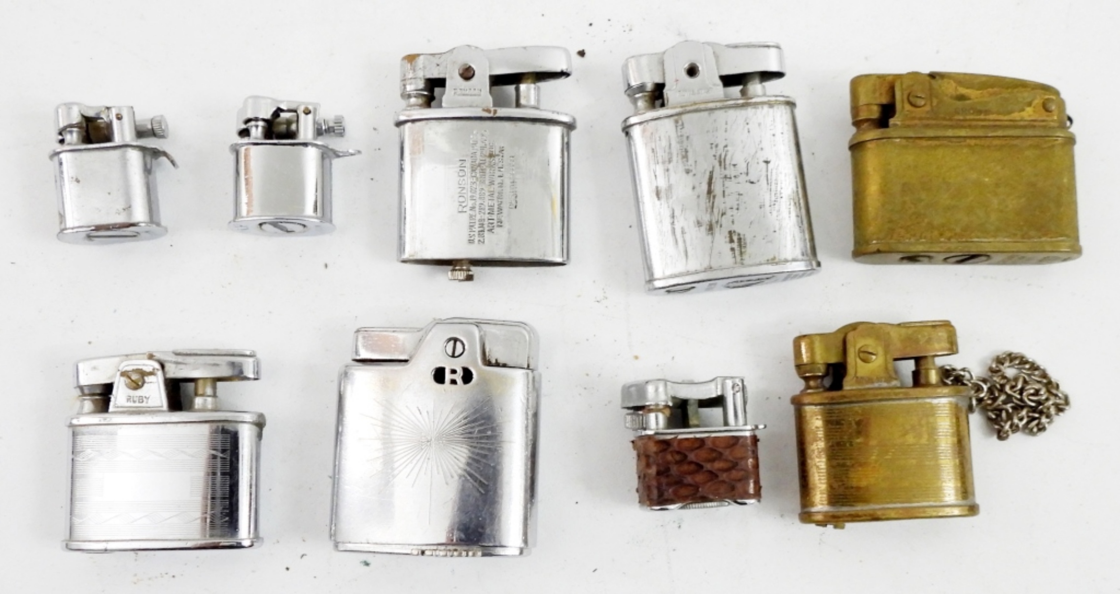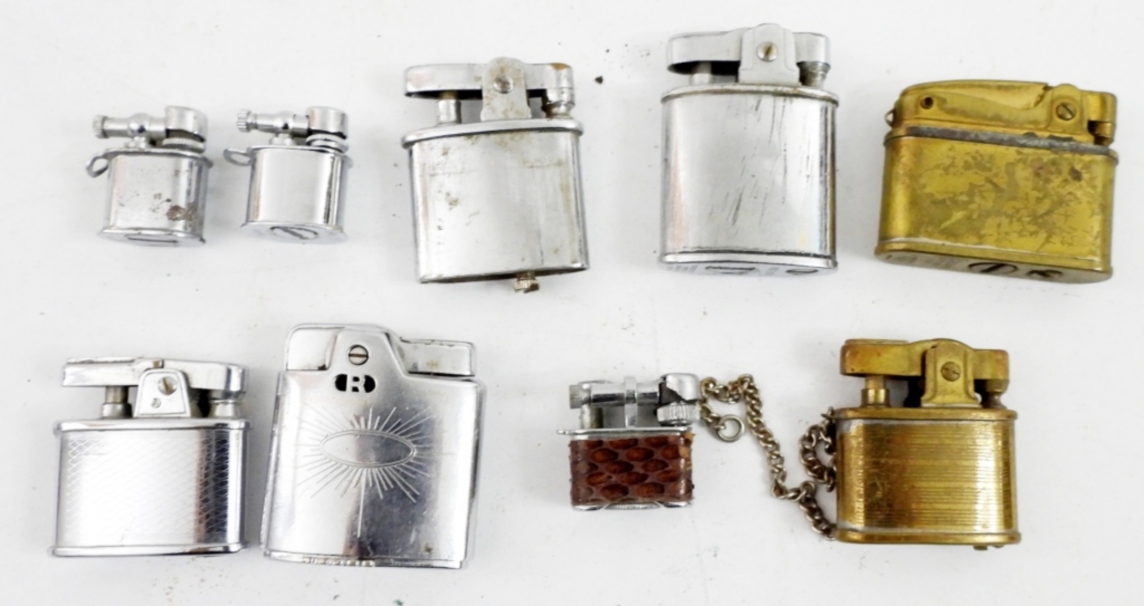 NINE GOLD AND SILVER TONE VINTAGE SMALL LIGHTERS.
