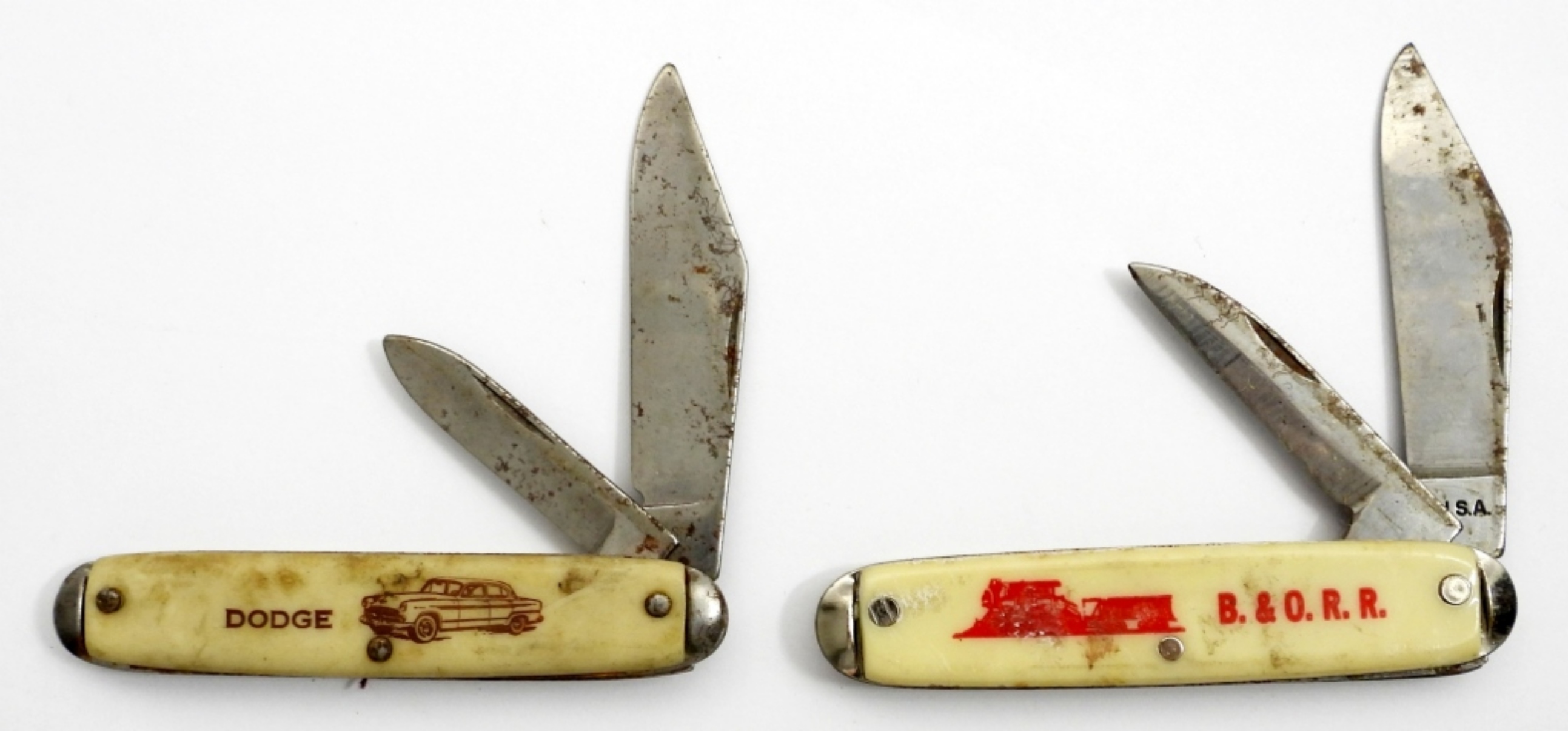 DODGE & B.&O.R.R. FOLDING MULTI-BLADE POCKET KNIVES – USED CONDITION