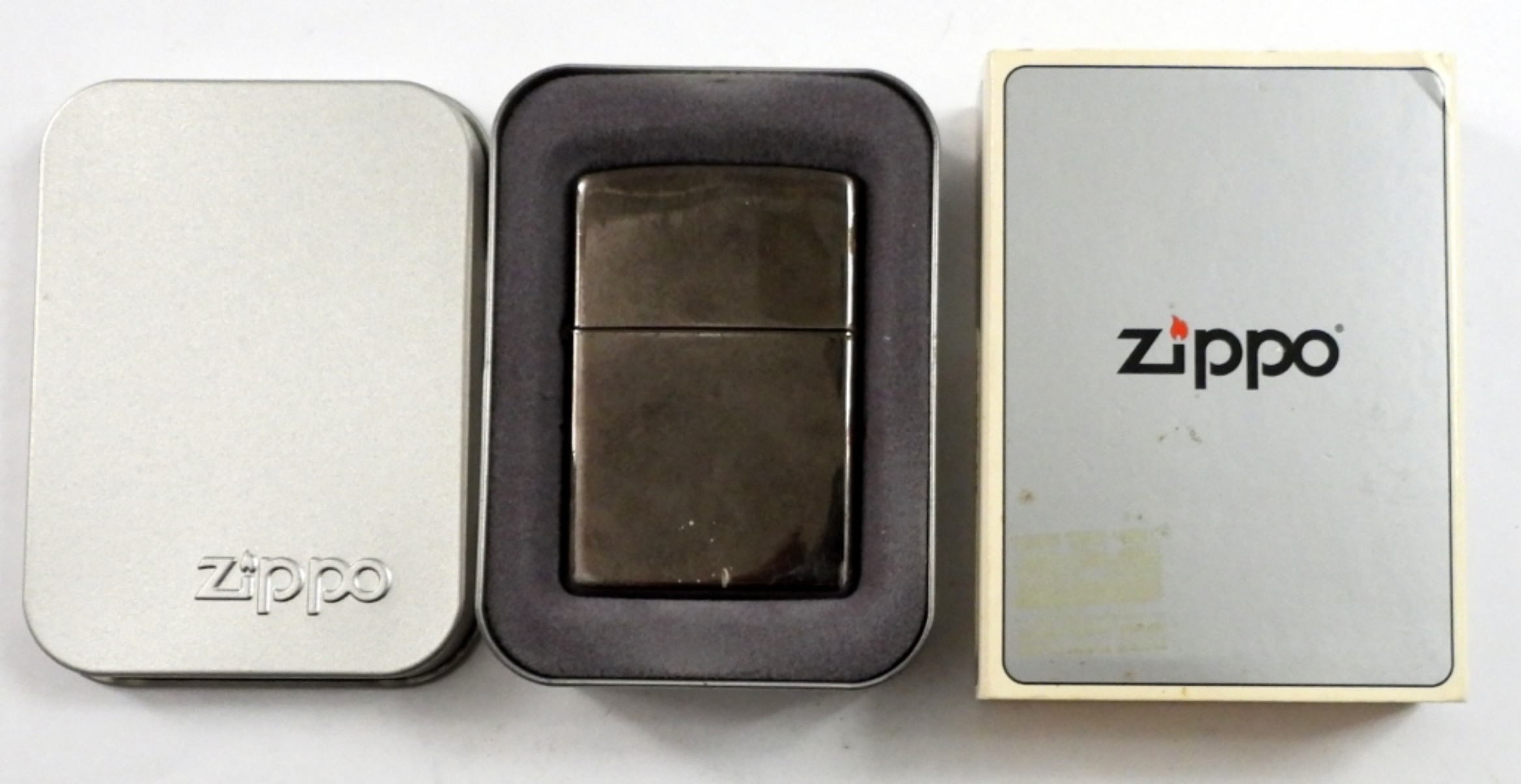 2001 ZIPPO BLACK ICE E-01 IN ORIGINAL TIN & BOX.