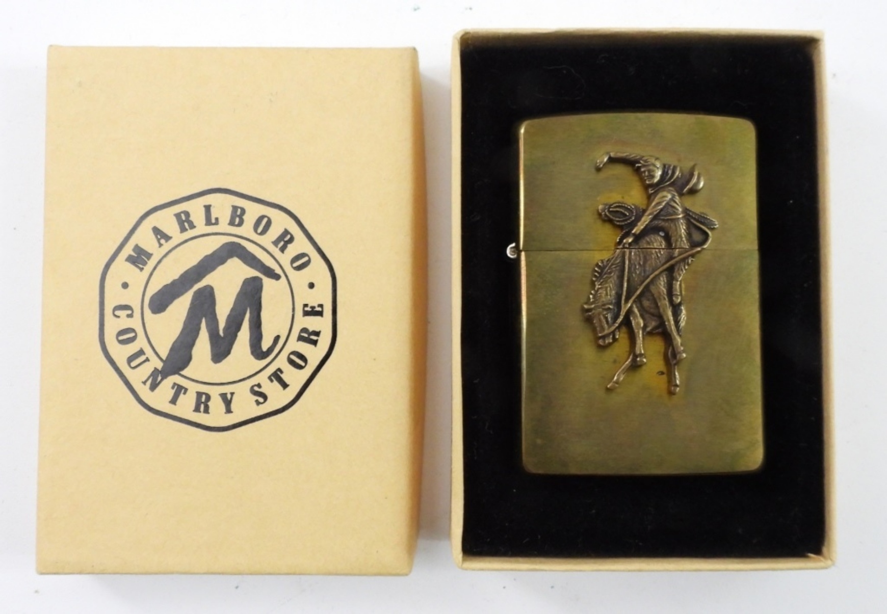 1994 SEALED MARLBORO BRASS BUCKING BRONCO ZIPPO IN ORIGINAL MARLBOROS BOX