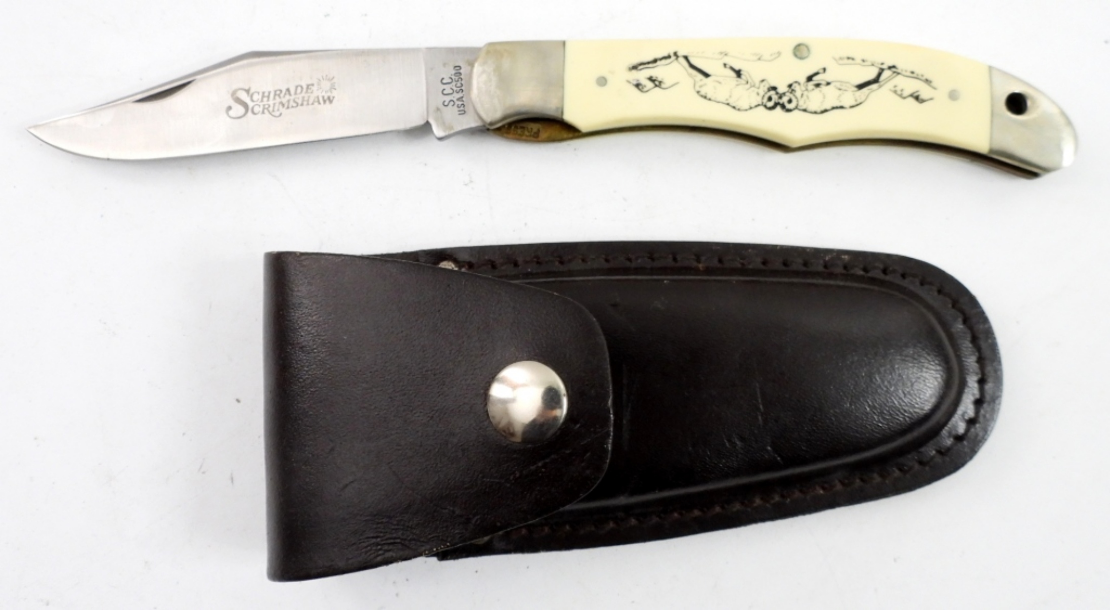 SINGLE BLADE LOCK BACK – LOOKS UNUSED in LEATHER SHEATH