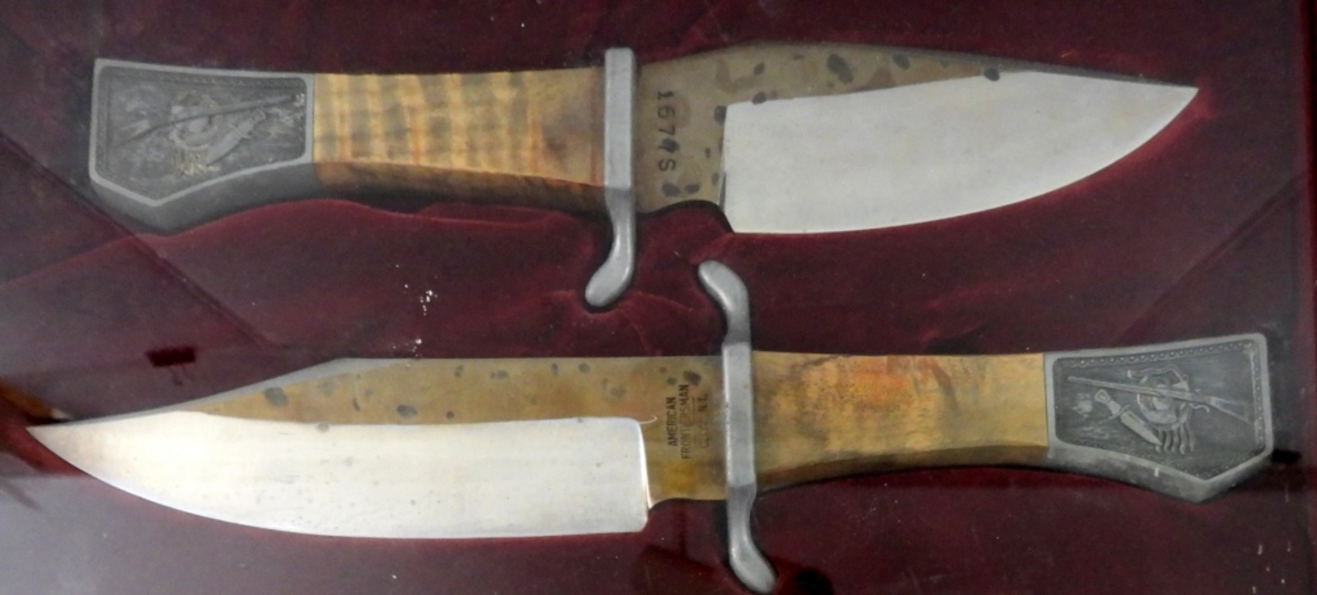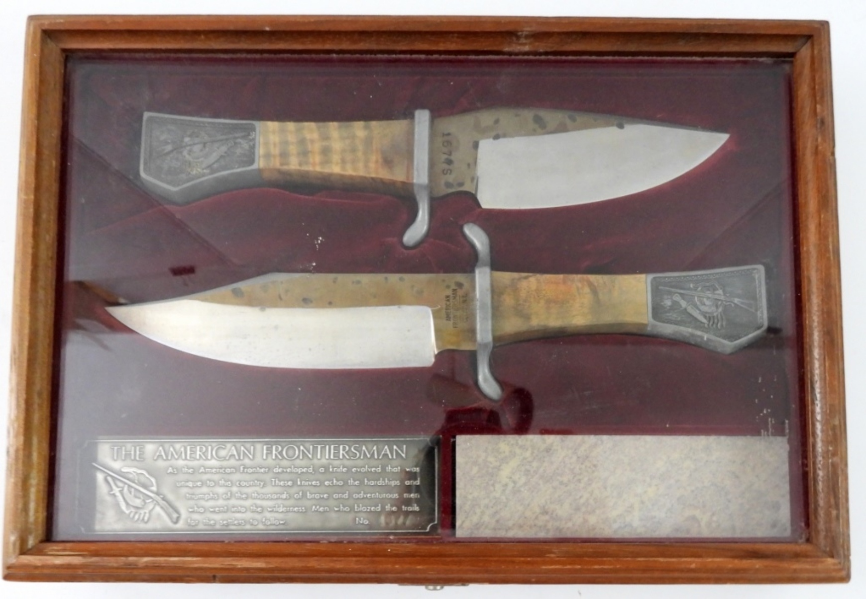 AMERICAN FRONTIERSMAN 2 KNIFE BOXED SET. THIS BOX IS LOCKED AND HAS NO KEY!