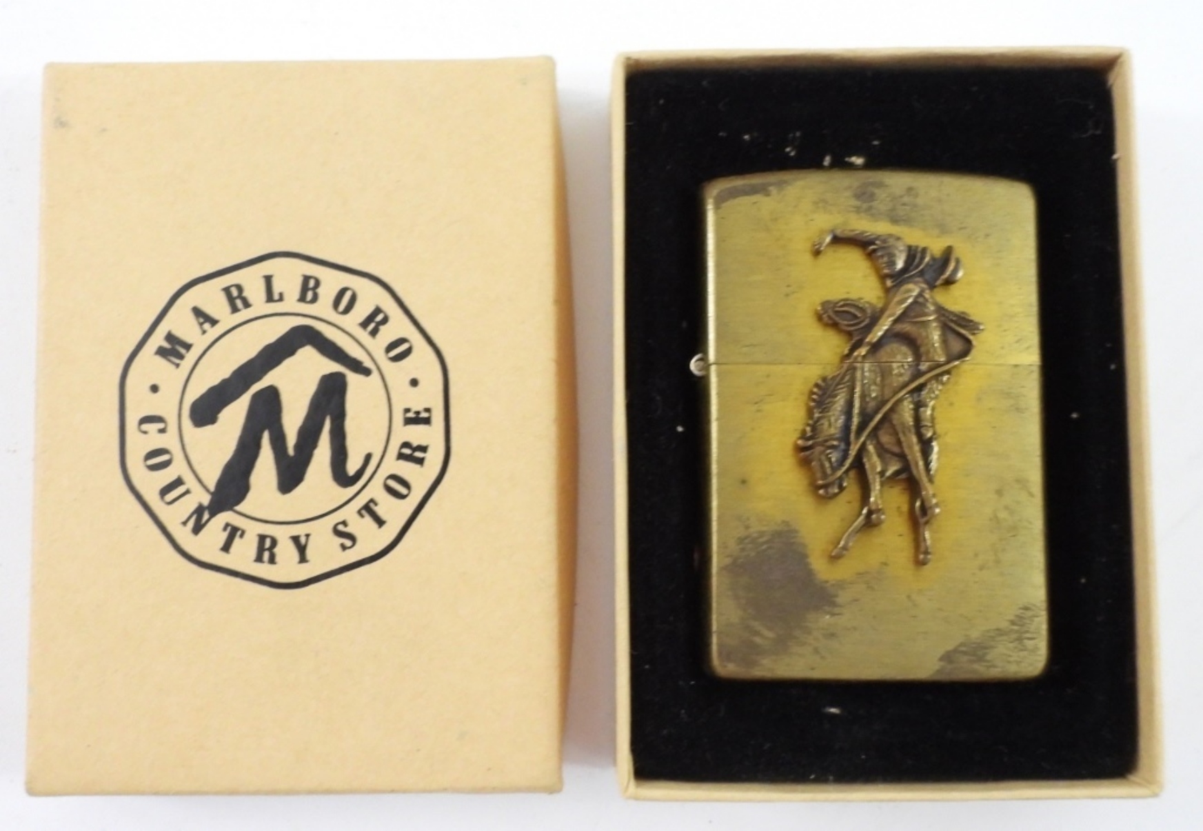 1994 UNSEALED /UNFIRED MARLBORO BUCKING BRONCE BRASS ZIPPOP IN MARLBORO BOX