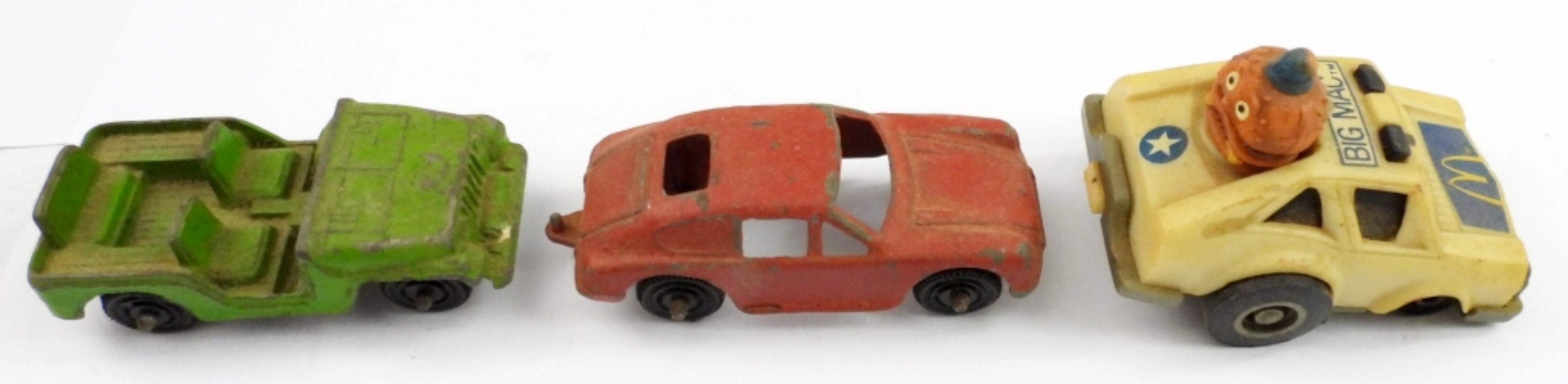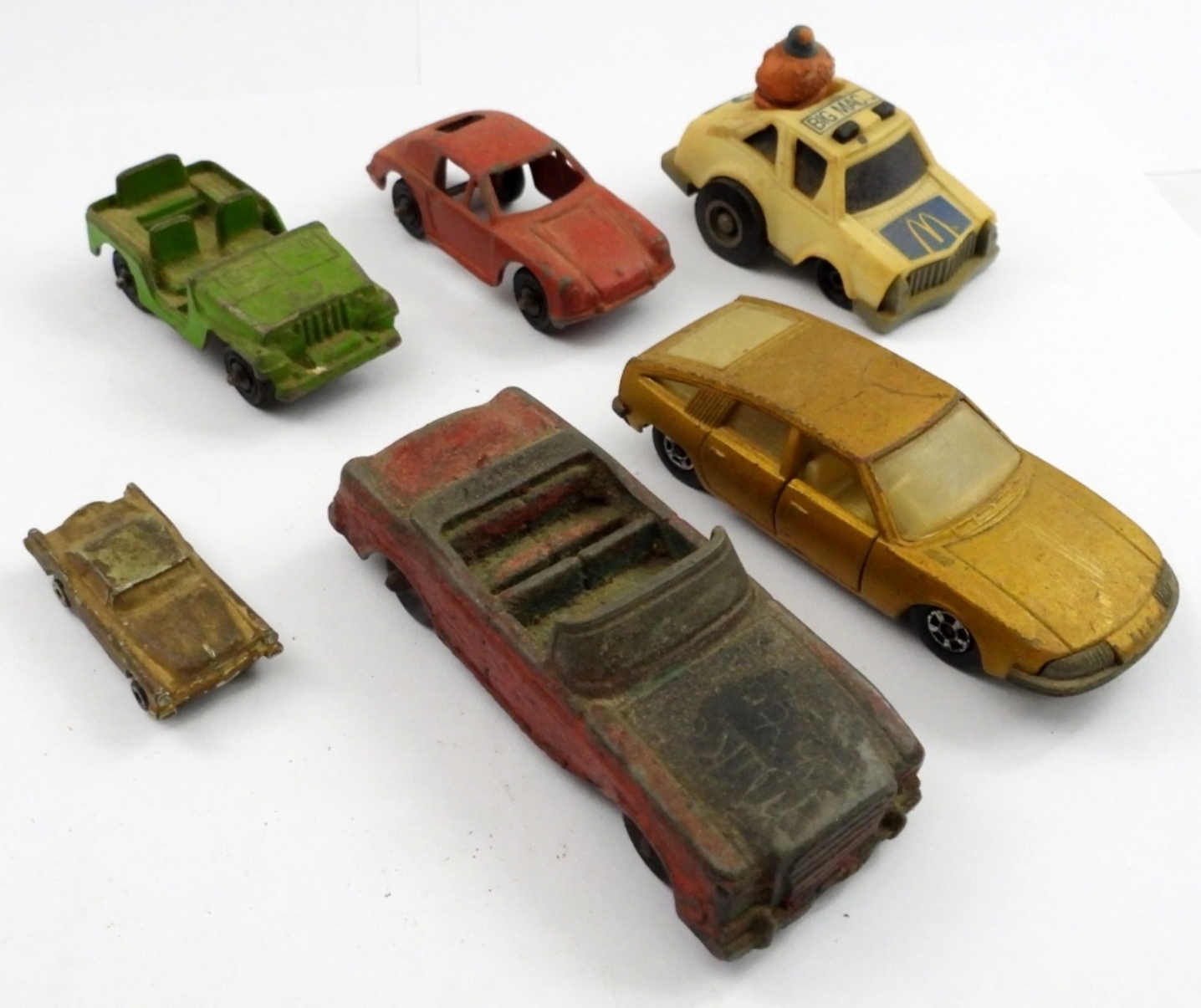 SIX SMALL VINTAGE TOY CARS, HOT WHEELS, MICRO MACHINES, MCDONALD’S AND OTHER. 1960’s – MID 1980’s.
