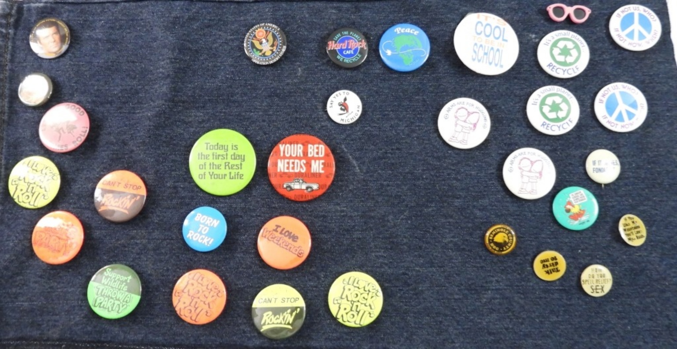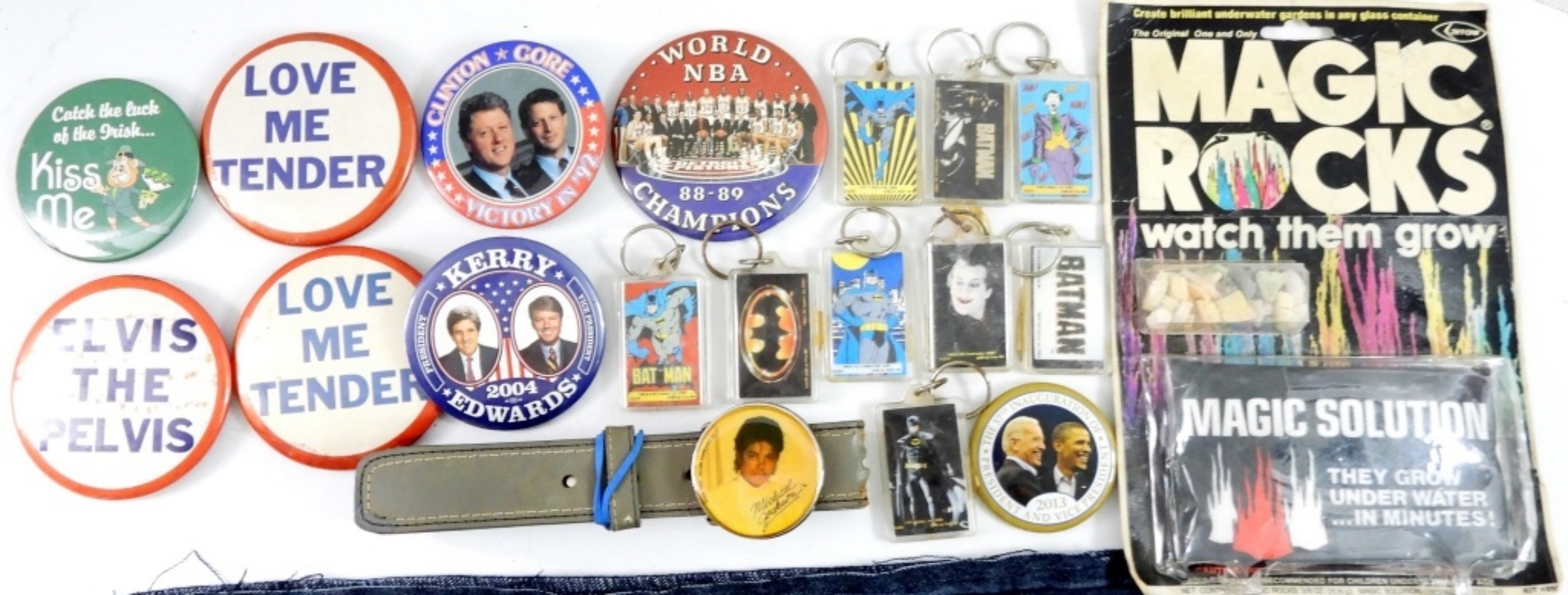 MICHAEL JACKSON BELT BUCKLE & BELT; ASSORTMENT of VINTAGE BUTTONS & VTG MAGIC ROCKS PACK