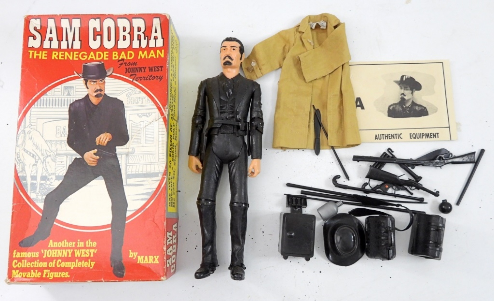 VINTAGE 1960S MARX JOHNNY WEST SAM COBRA THE RENEGADE BAD MAN WITH ACCESSORIES IN ORIGINAL BOX