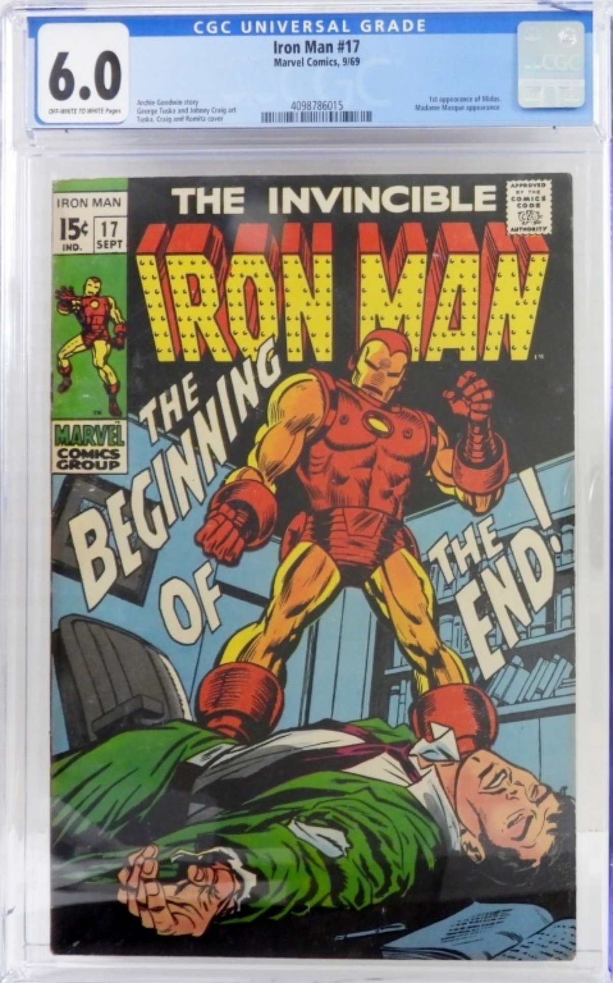 MARVEL THE INVINCIBLE IRON MAN “THE BEGINNING OF THE END” #17 SEPT 1969. GRADED 6.0