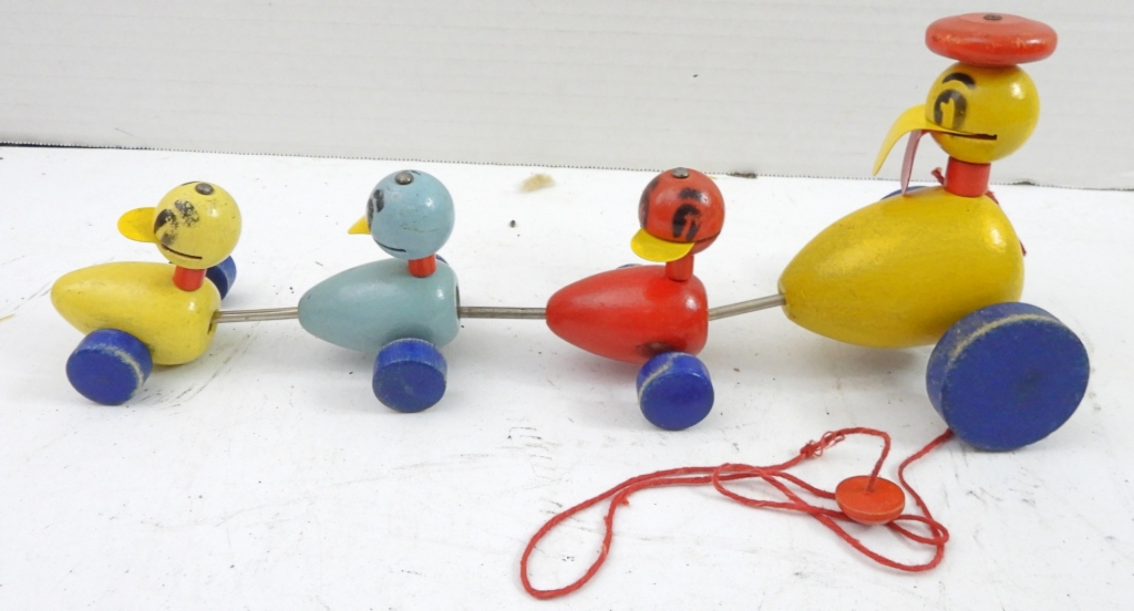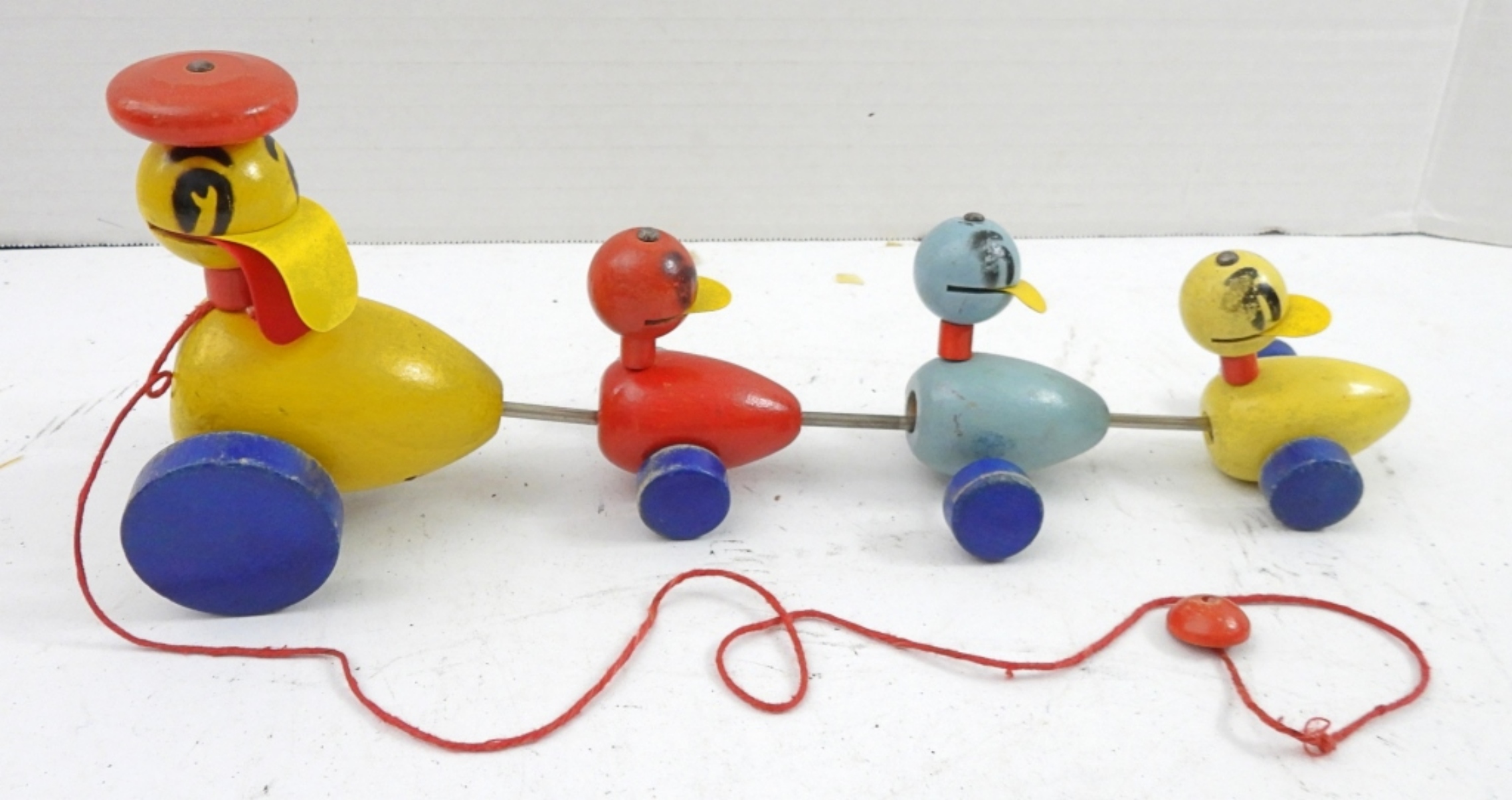 WOODEN PULL TOY – MOM QUACKS – VERY NICE CONDITION – ORIGINAL BOX shows wear