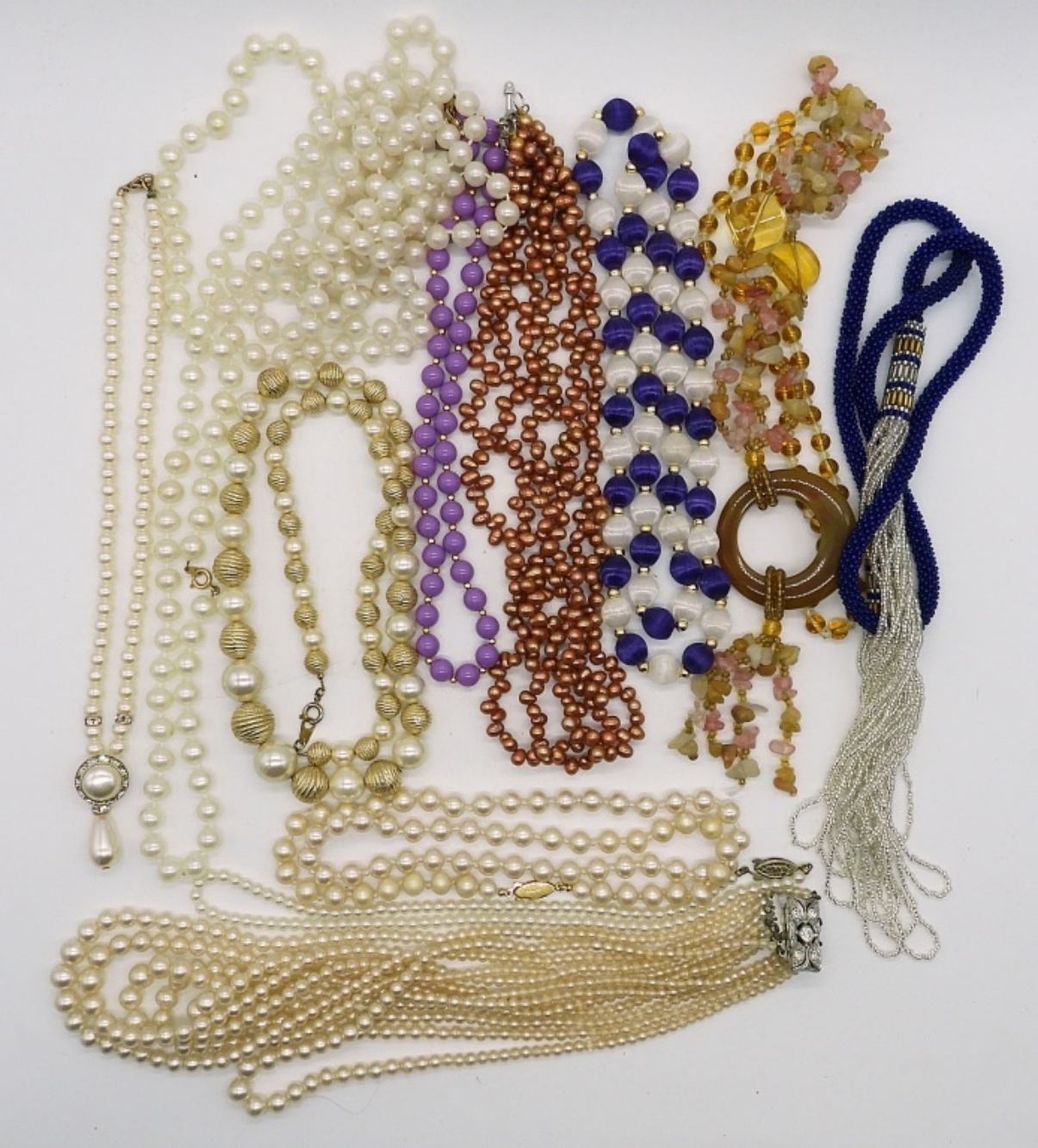 (12) VINTAGE FASHION & PEARL NECKLACES. 15-30″.